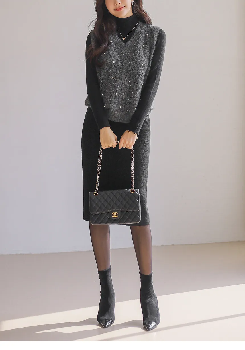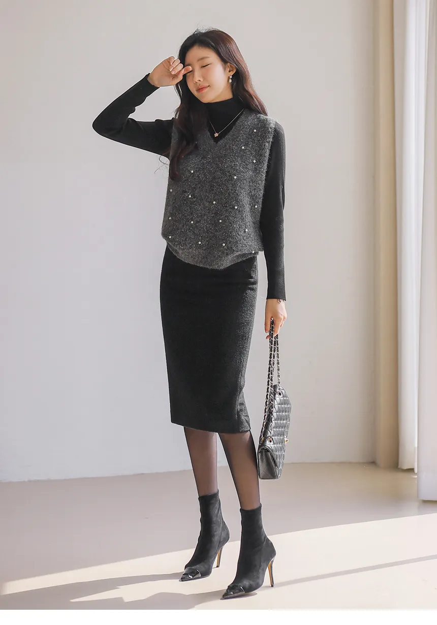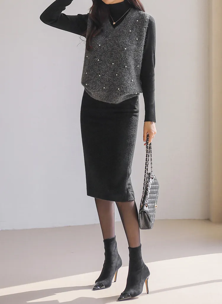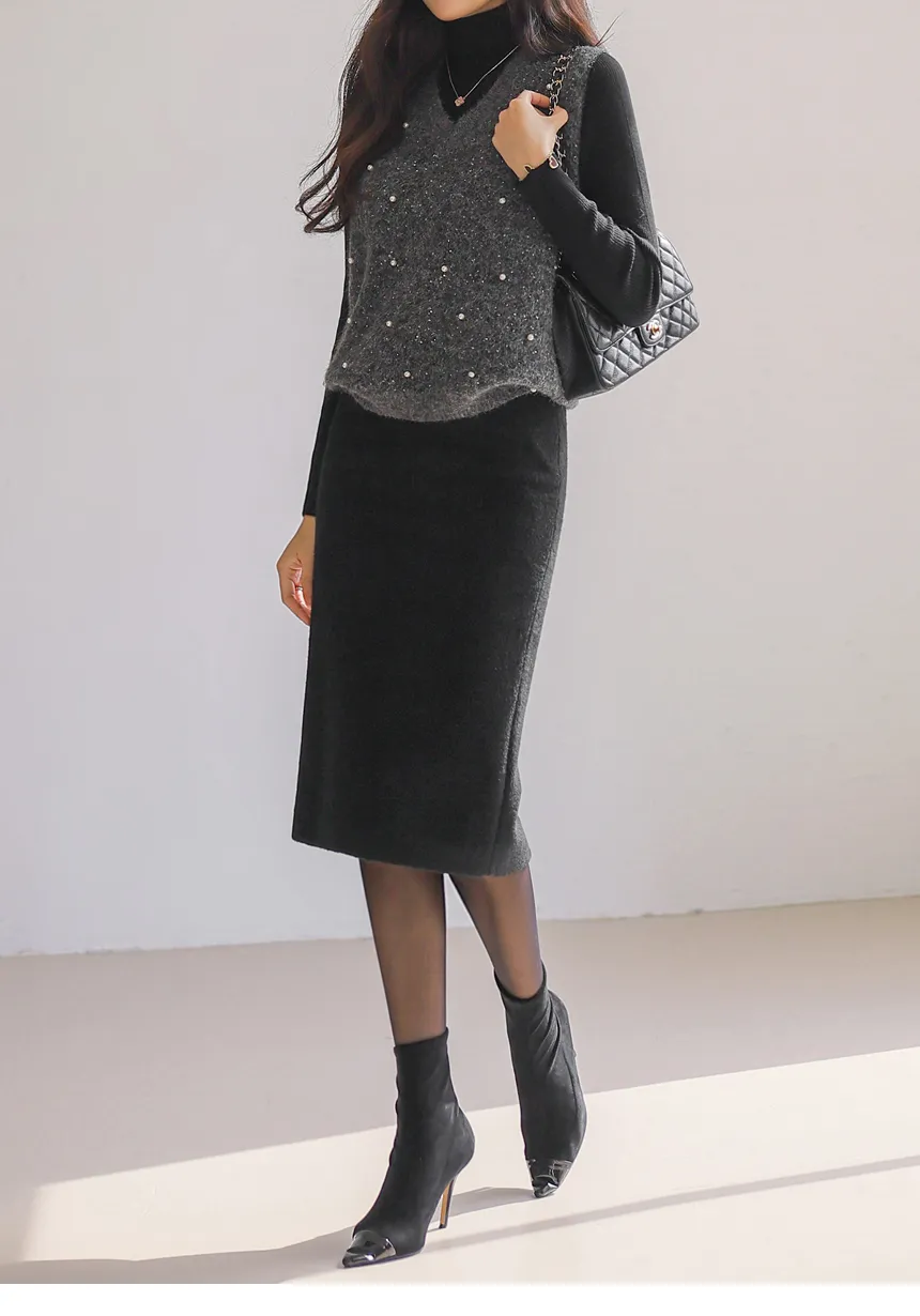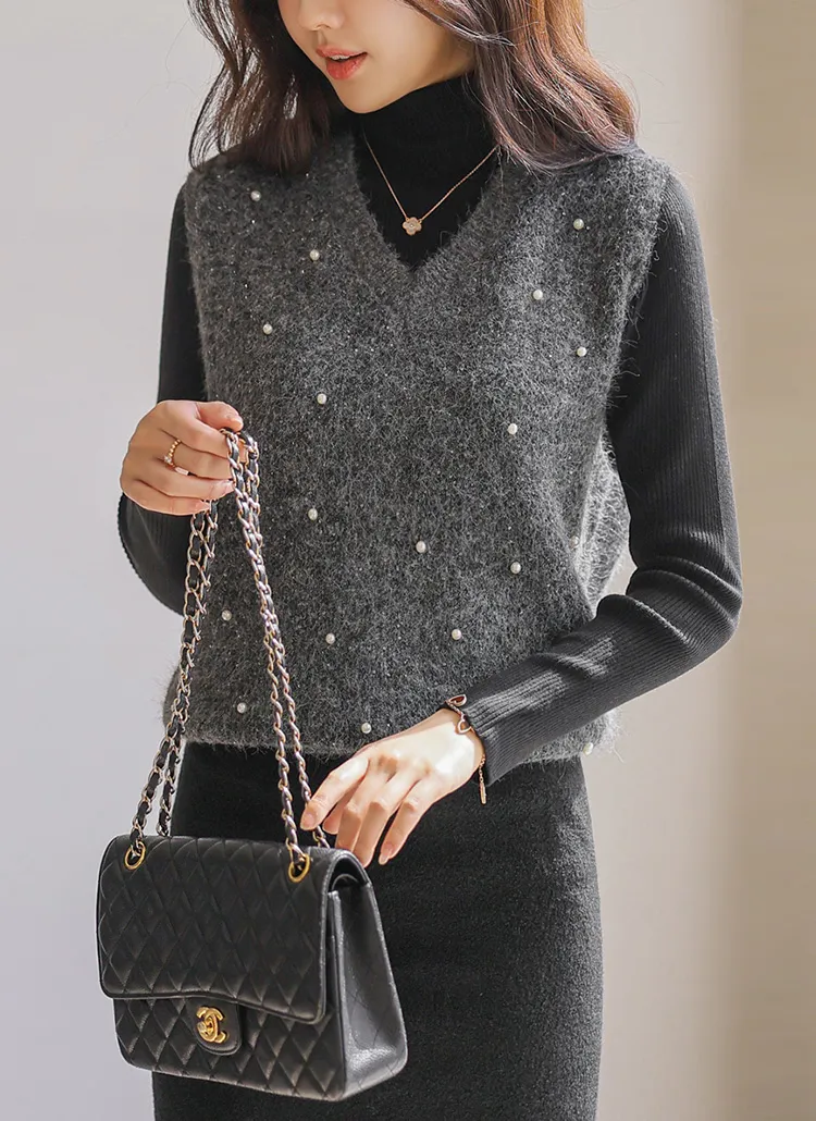 ウール混アンゴラ混Vネックビスチェ