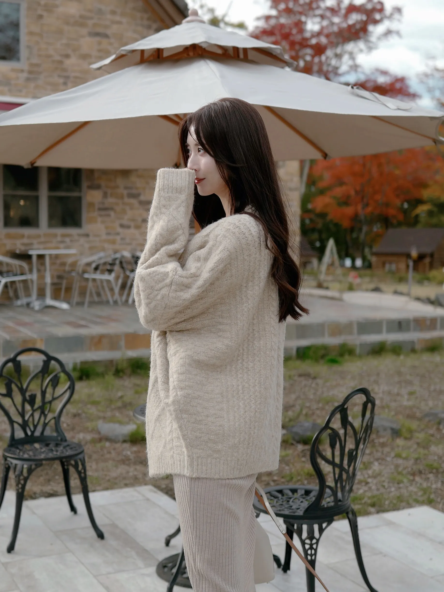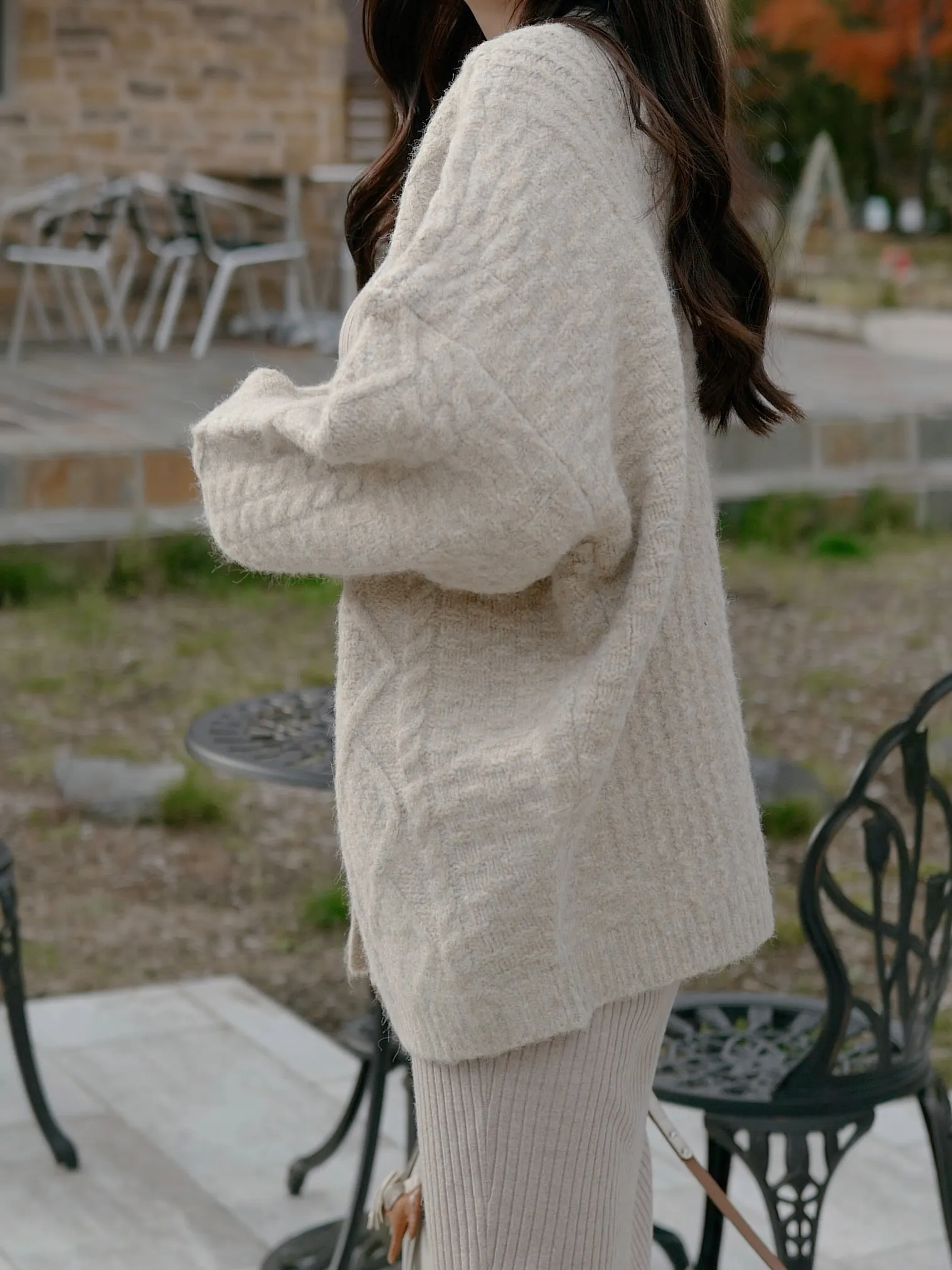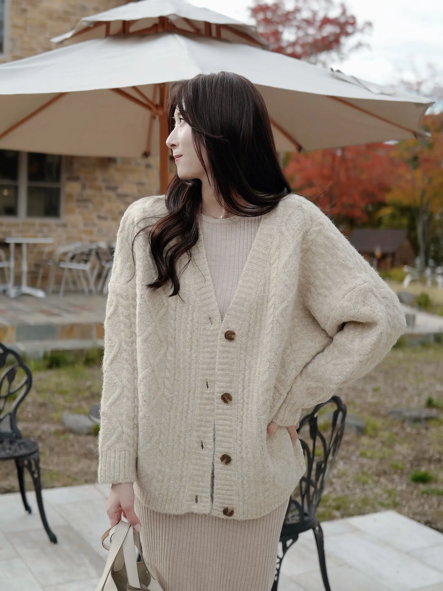 ゆるっと大きめシルエットがかわいいニットのアウターです♡