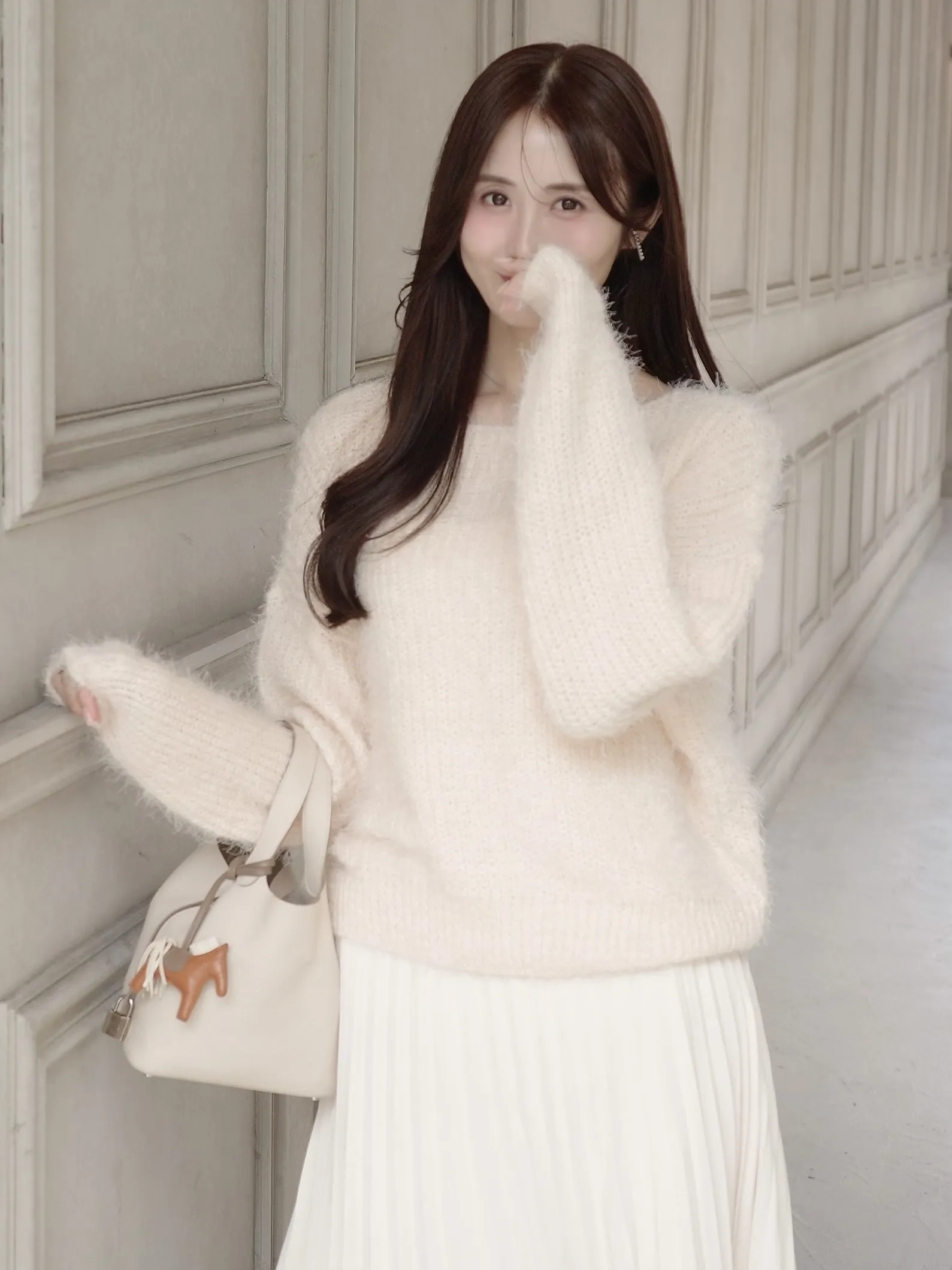 ふわふわ着心地良く、ゆるっとしたシルエットが女性らしくかわいいシャギーニット♡