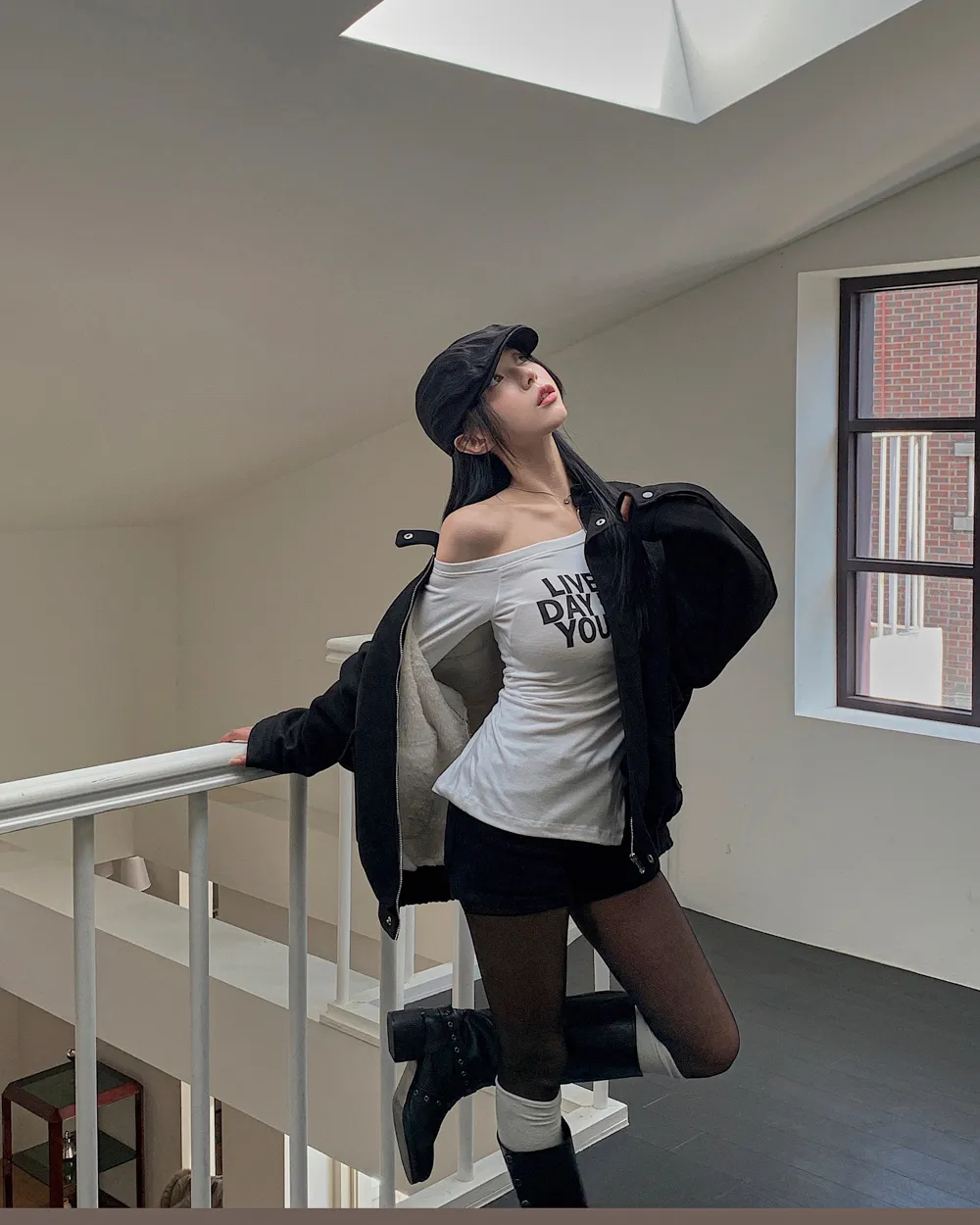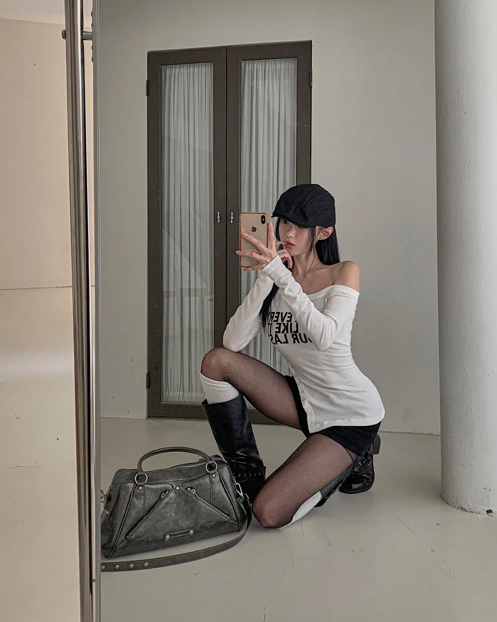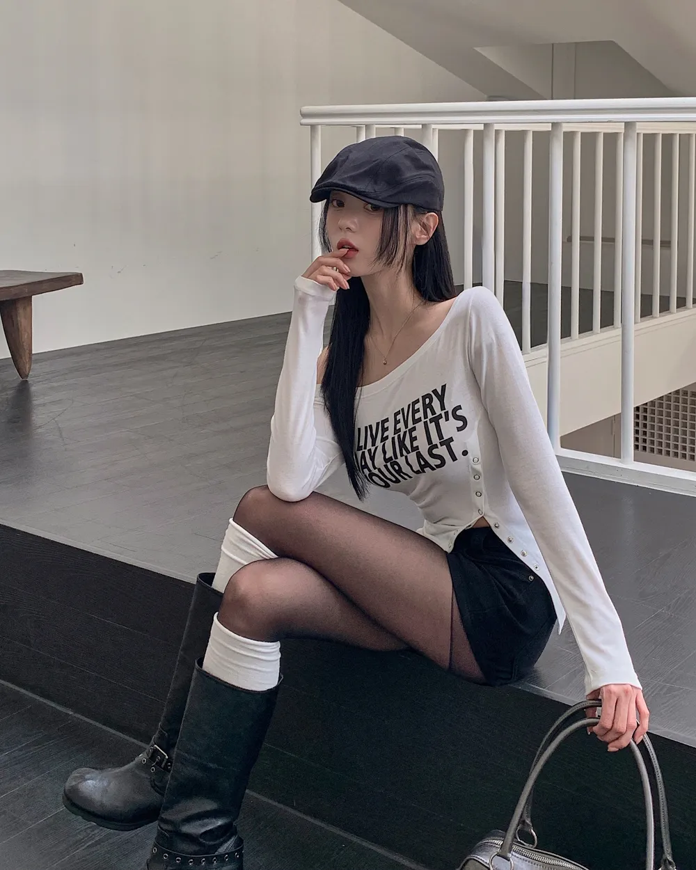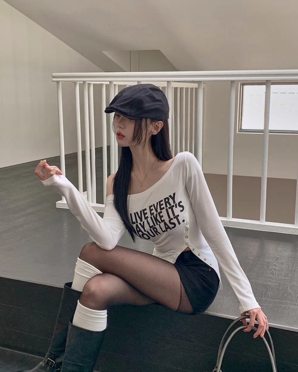 着用 : アイボリー / FREE,チャコール / FREE