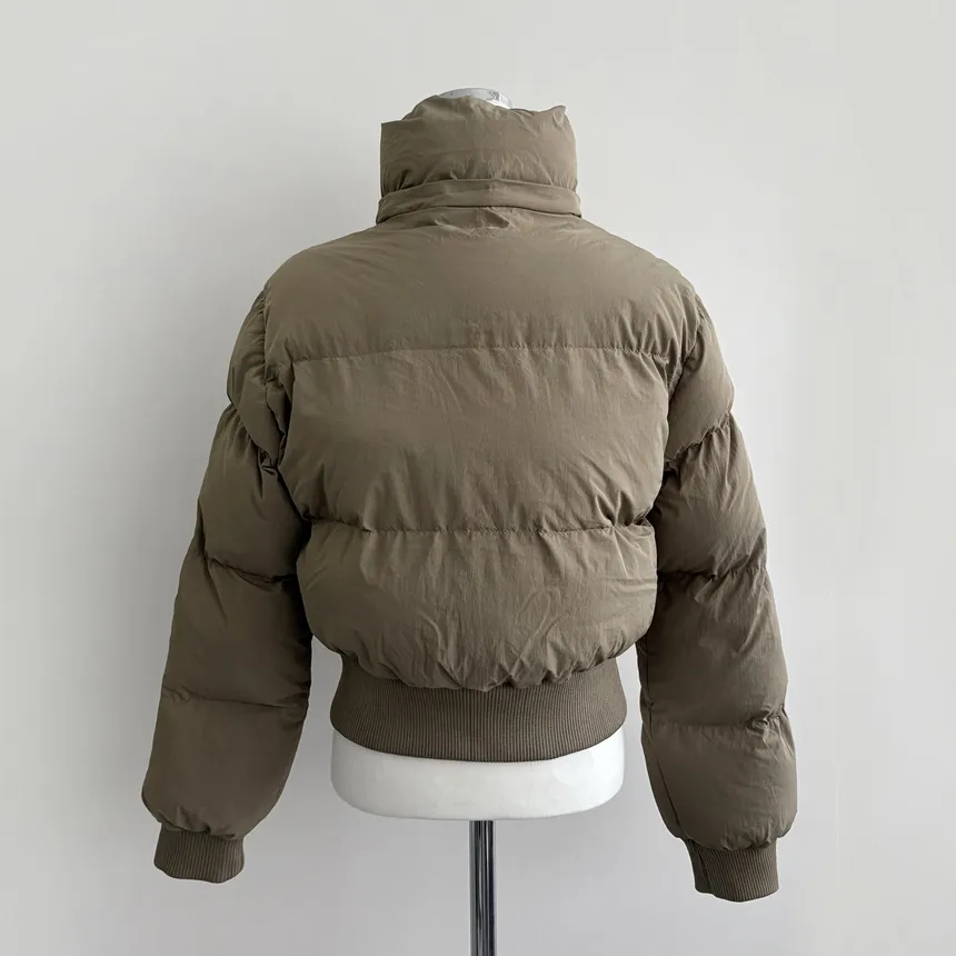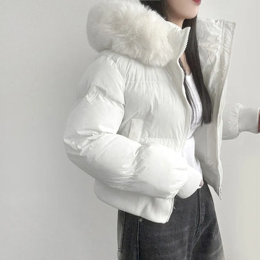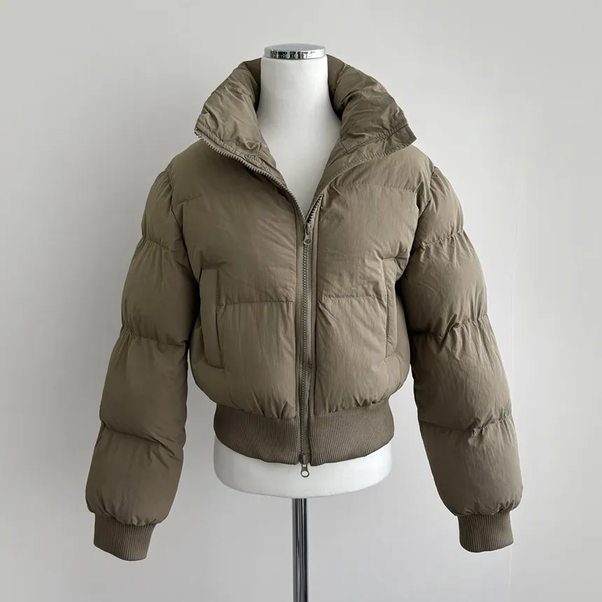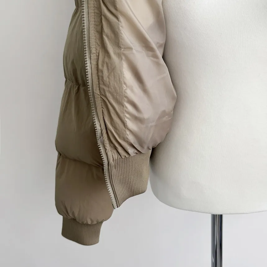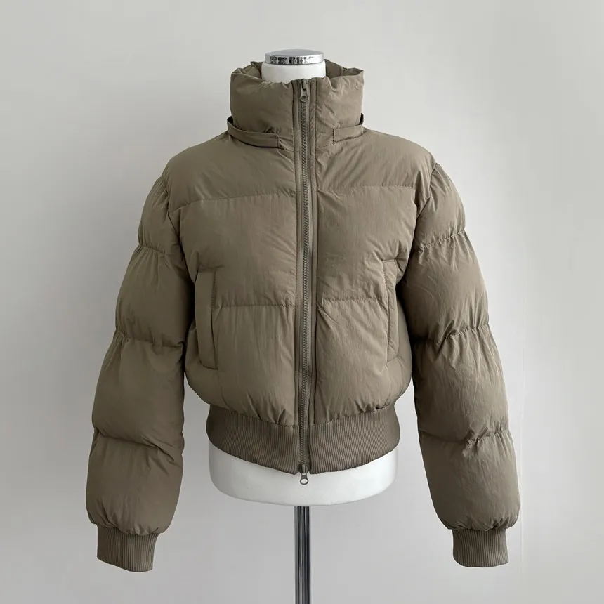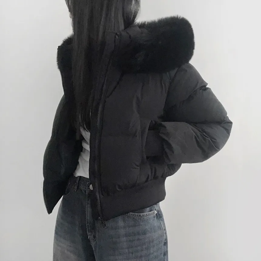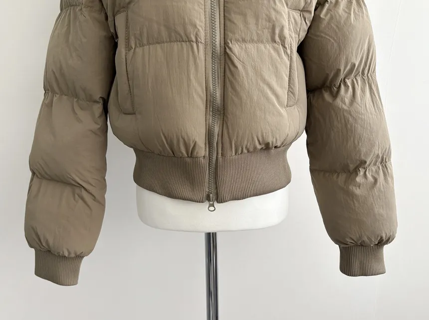 グースダウンハーフネックポケットダブルジップオーバーサイズショート長袖ダウンジャケット