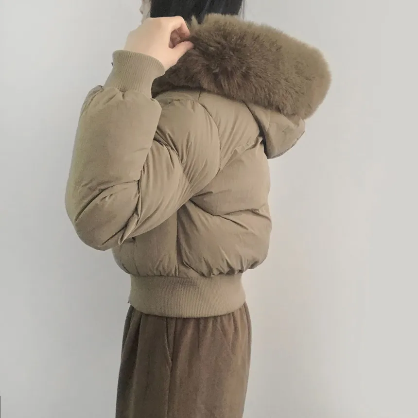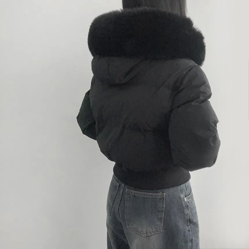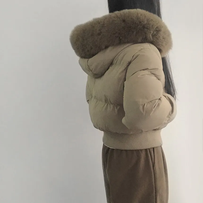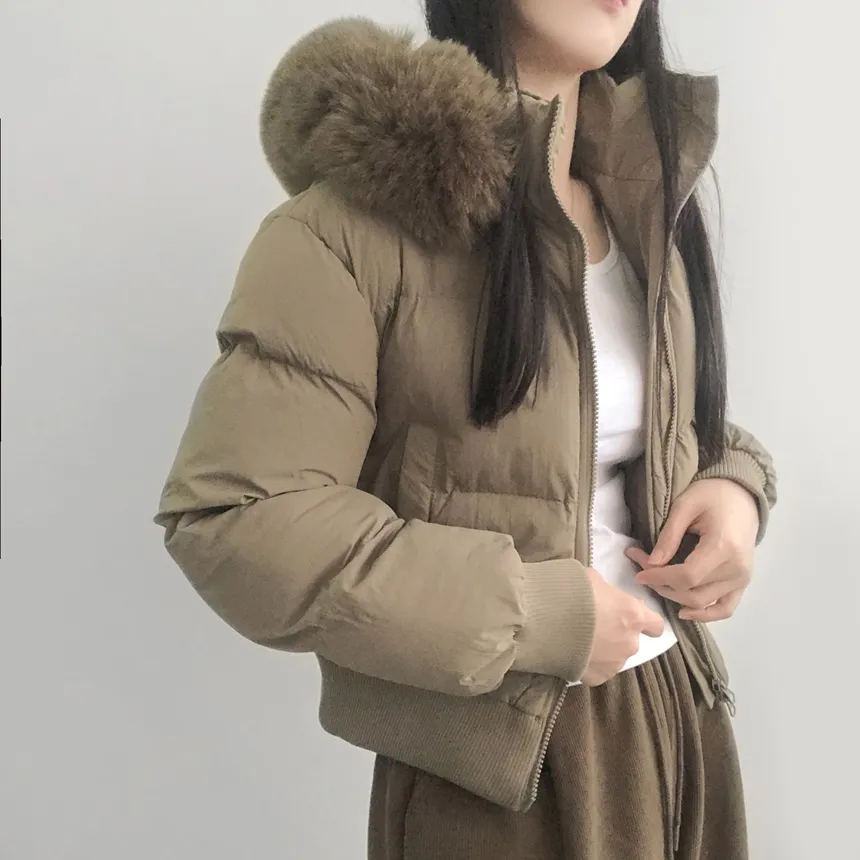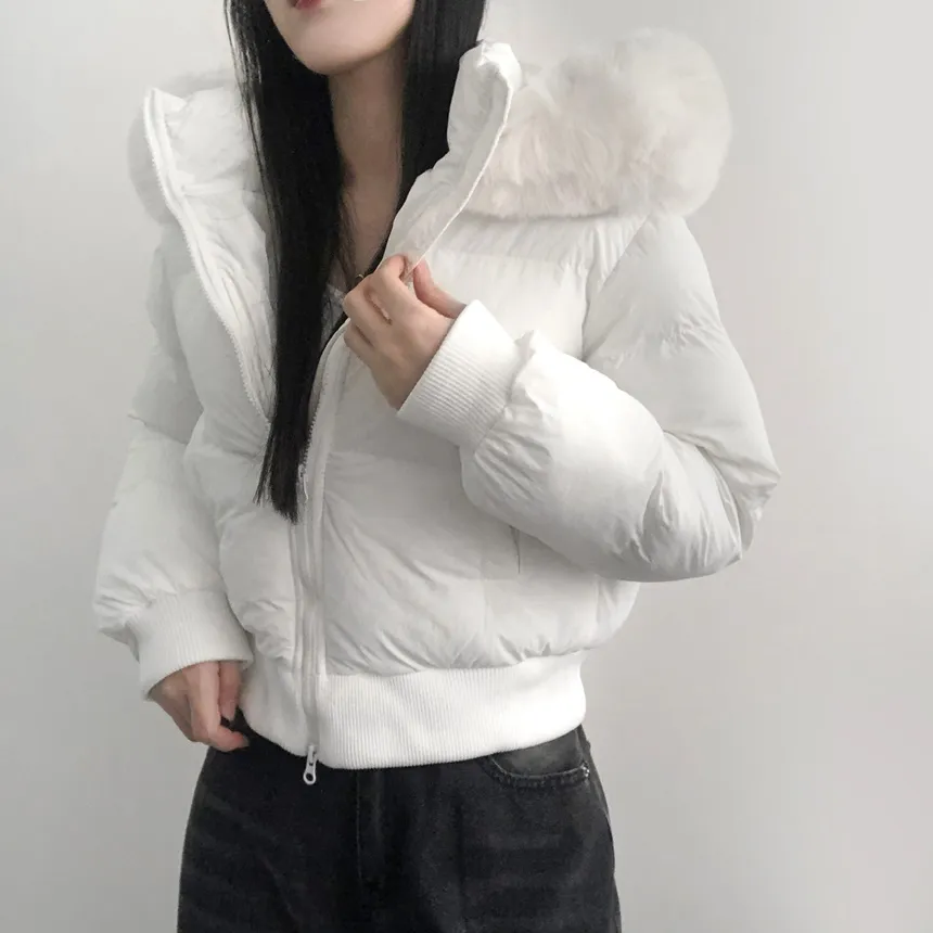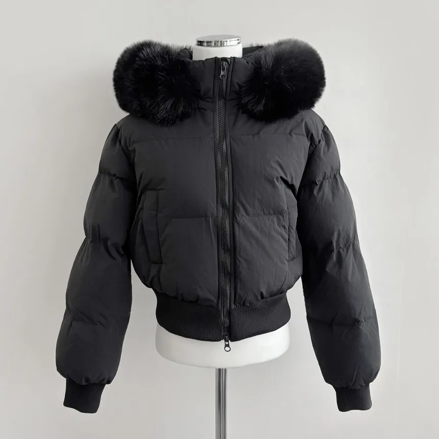 グースダウンハーフネックポケットダブルジップオーバーサイズショート長袖ダウンジャケット