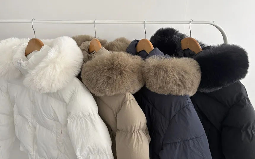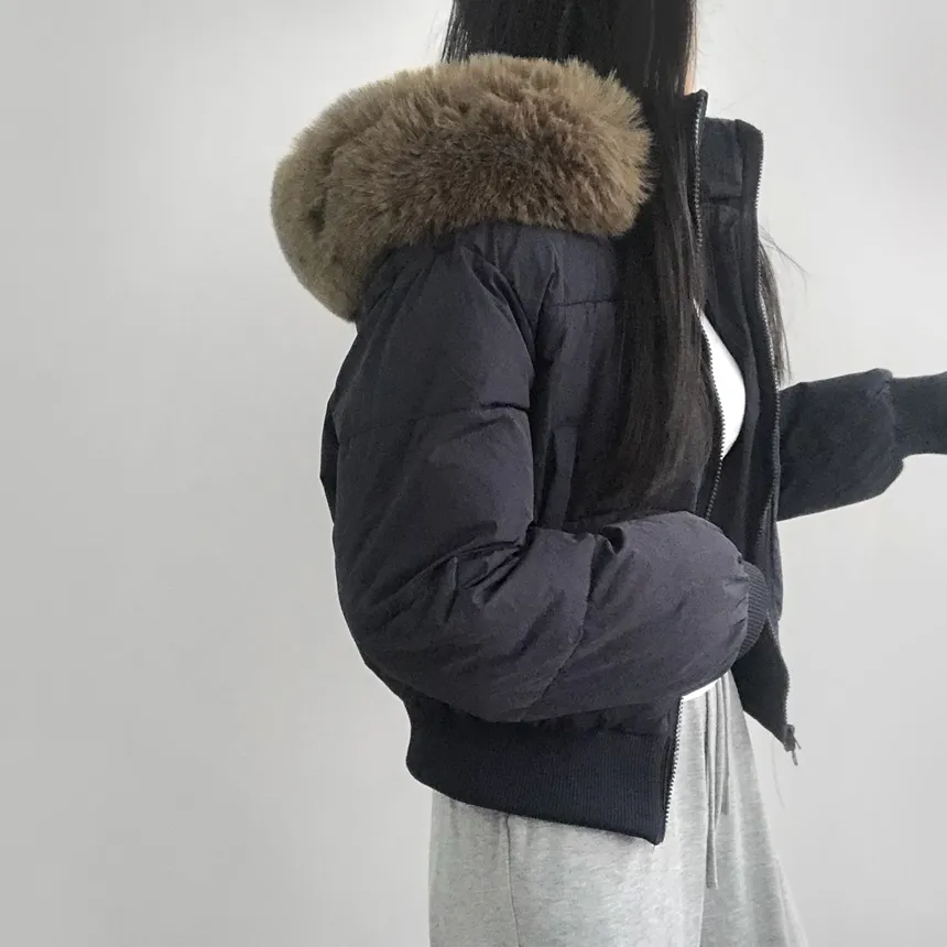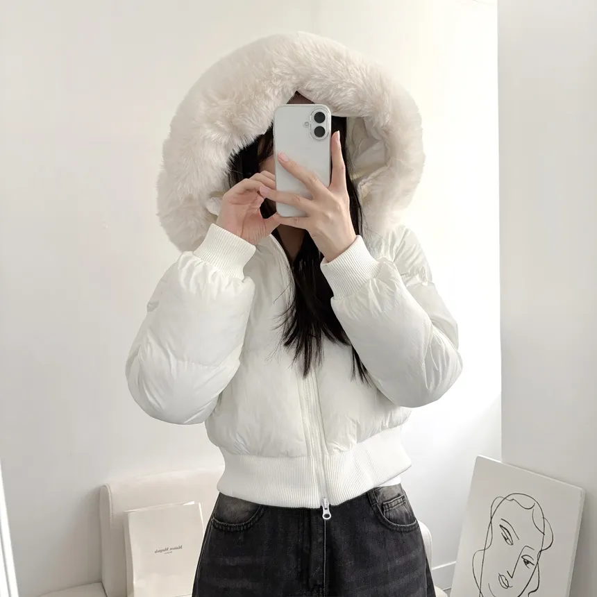 ファーセットウェルロンジップアップドローストリングポケット長袖ダウンジャケット