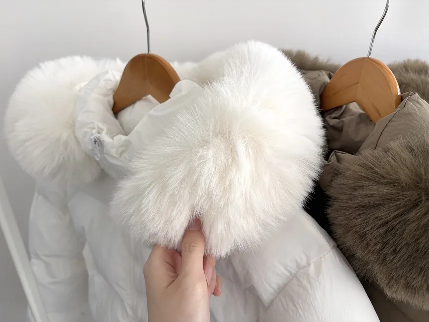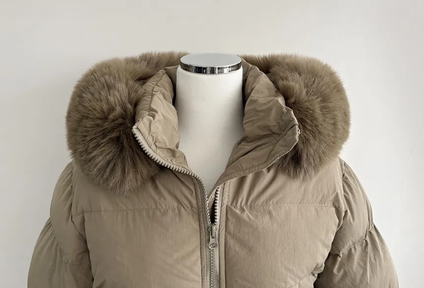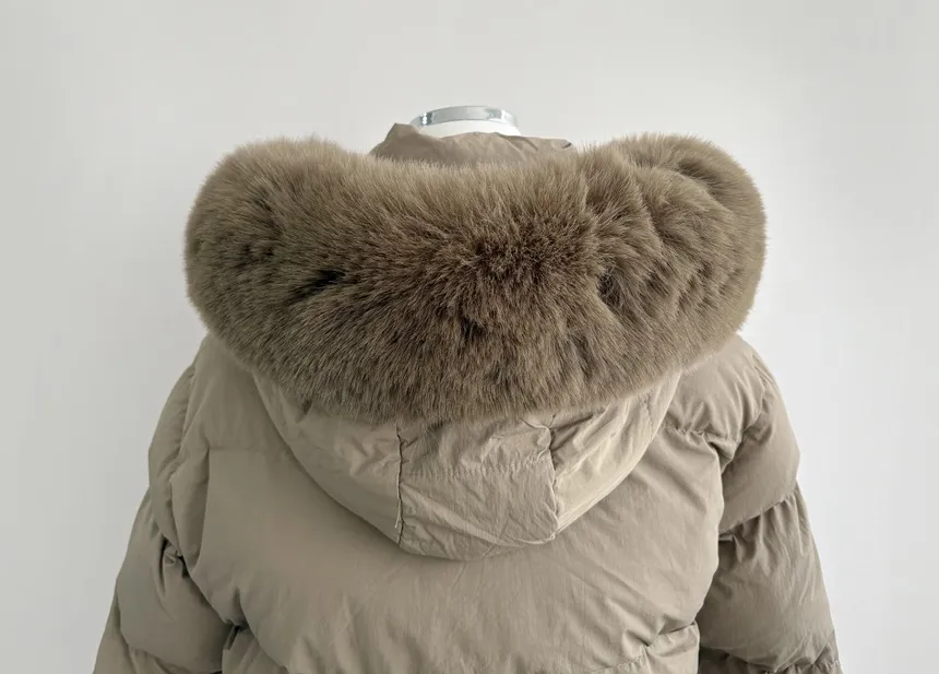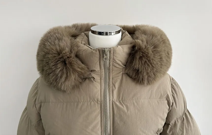 ファージップアップフードロングスナップボタンダウンジャケット