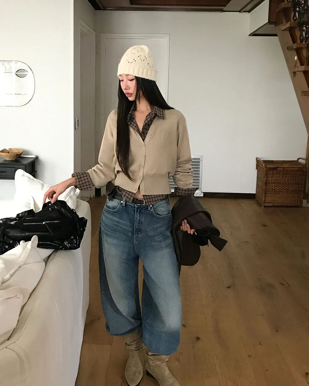 着用 : アイボリー / FREE,ベージュ / FREE,バーガンディ / FREE,スカイブルー / FREE