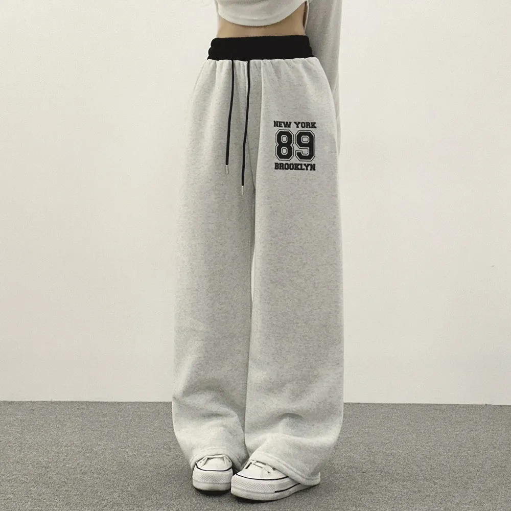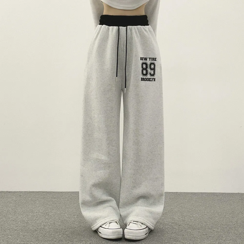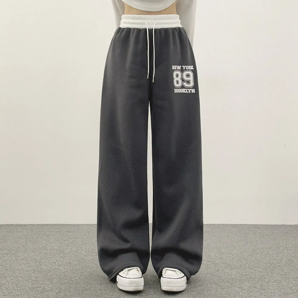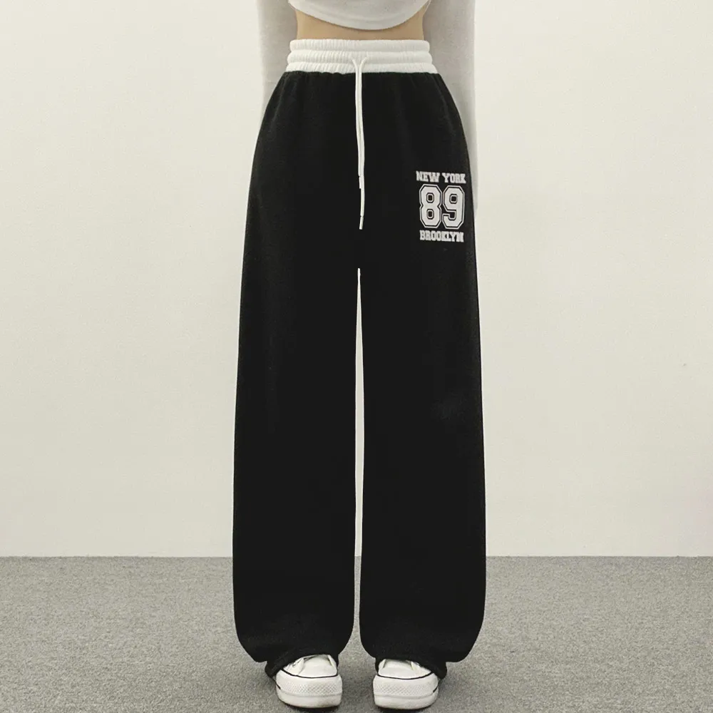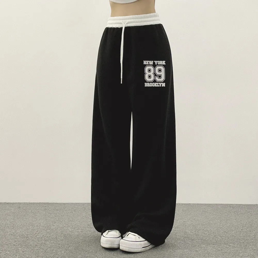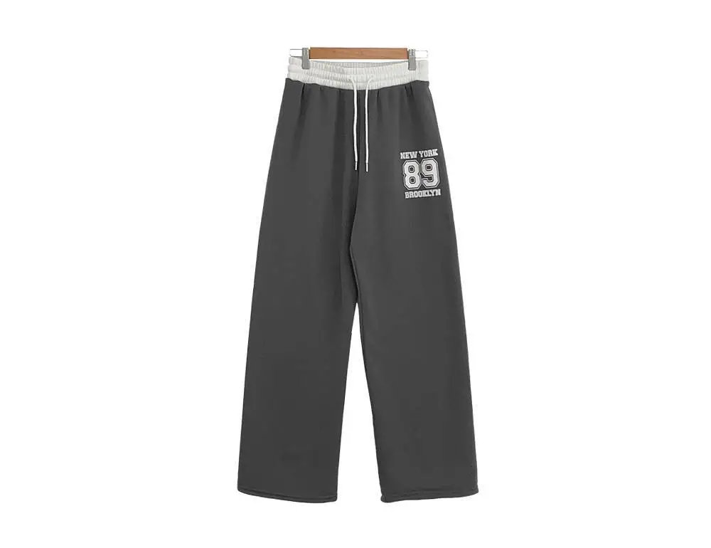 裏起毛ウエストゴムドローストリング配色プリントパンツ・S1943988