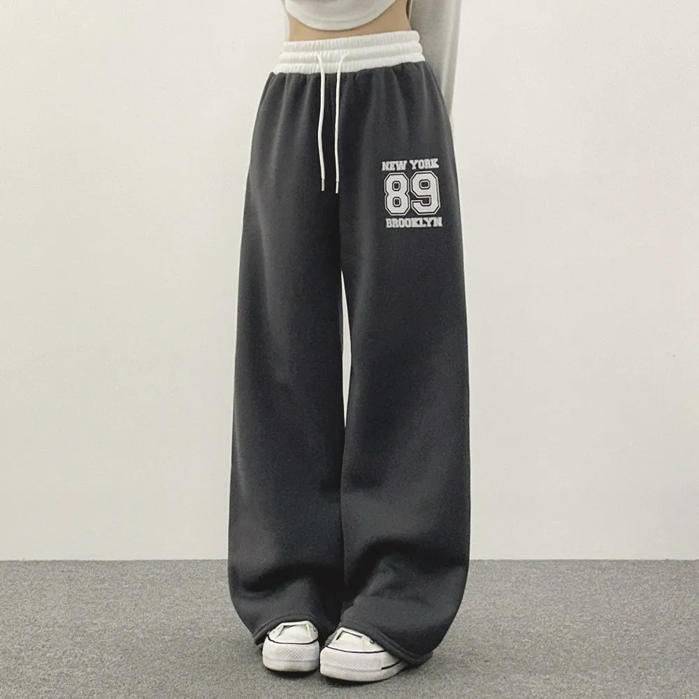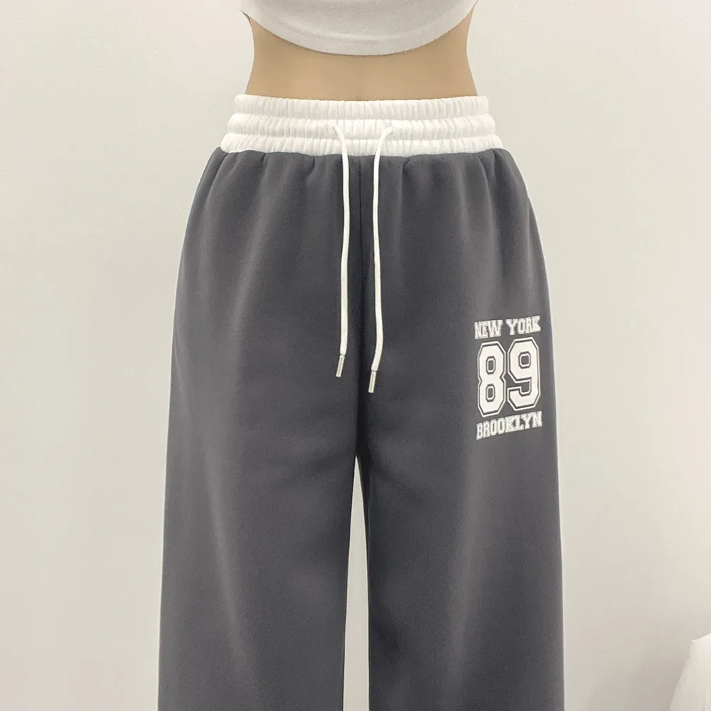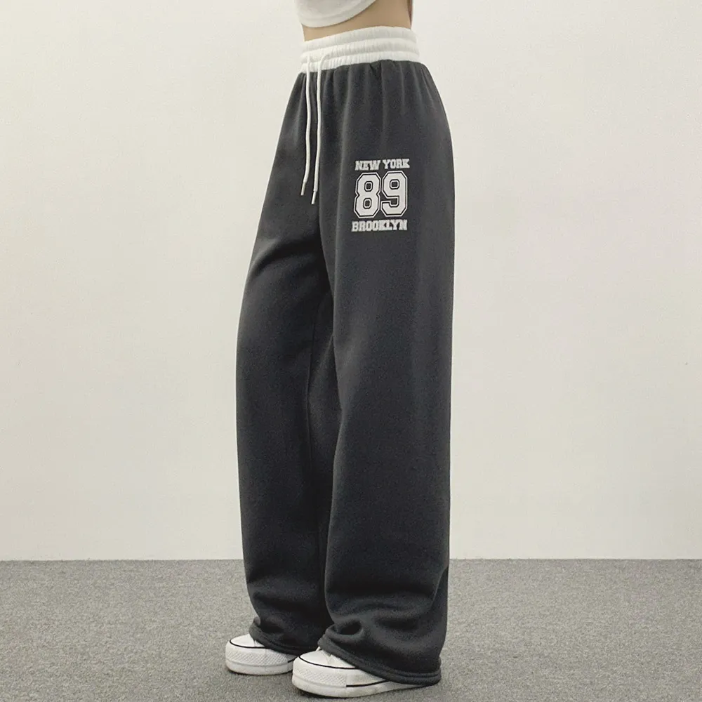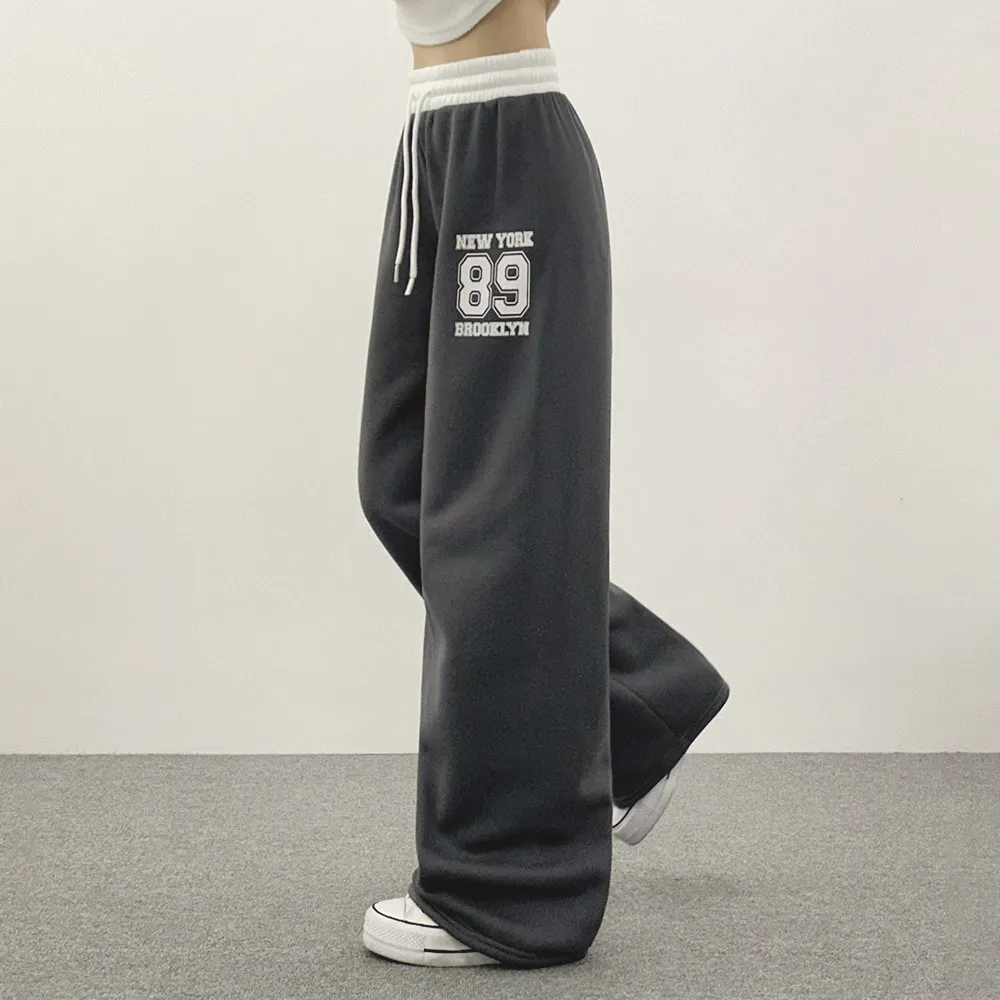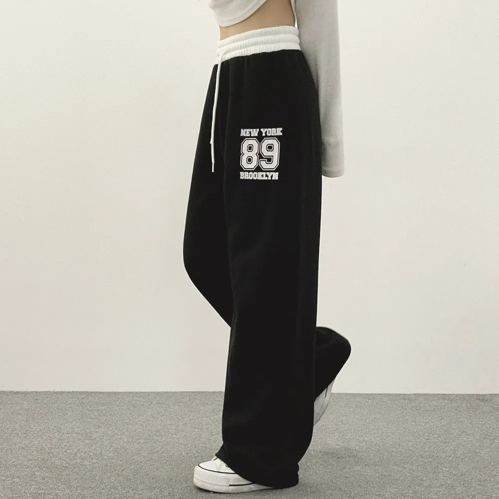 裏起毛ウエストゴムドローストリング配色プリントパンツ・S1943988