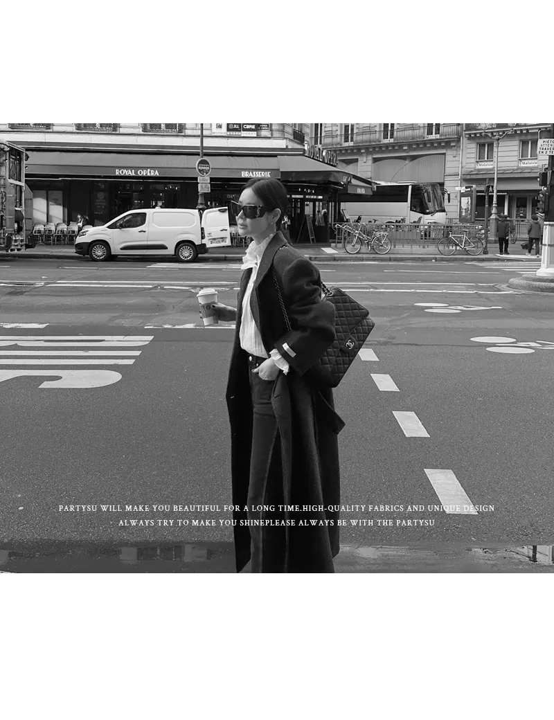 ツイードウール混長袖ラウンドネックボタンステッチビジューボタンジャケット