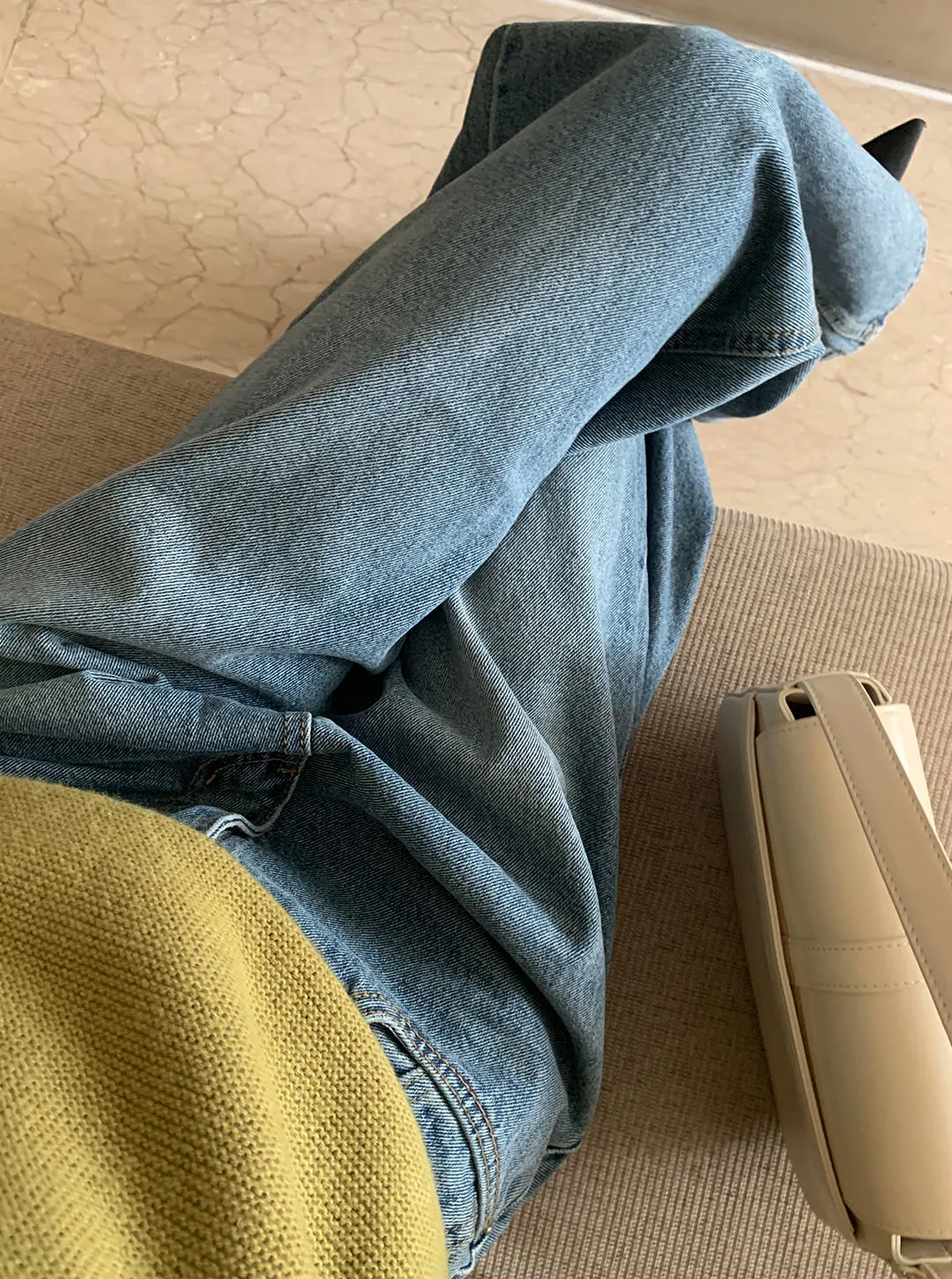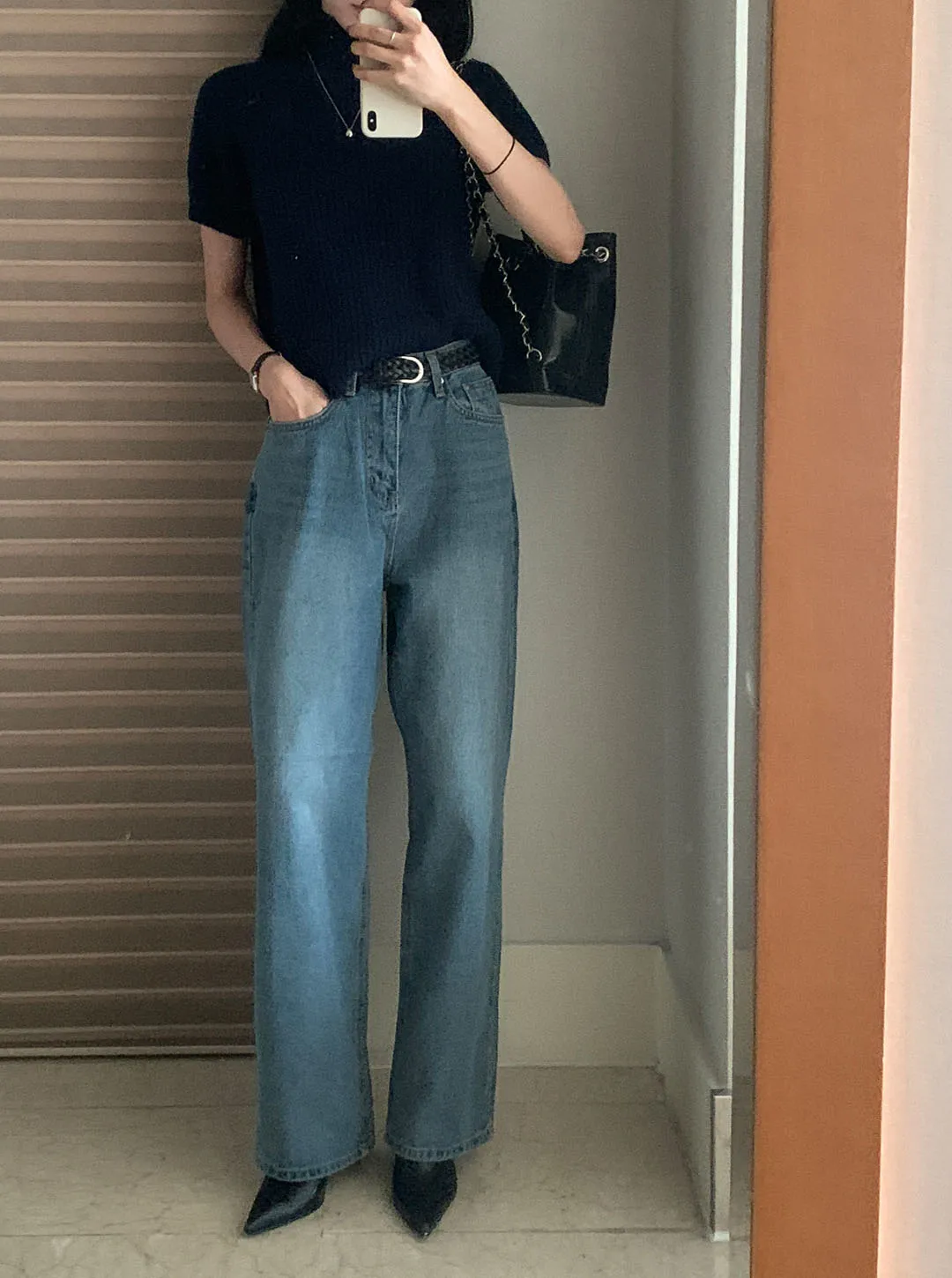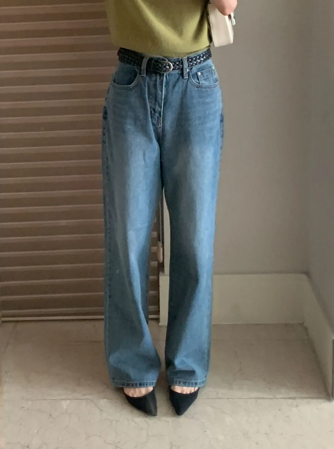 ミッドブルーストレートデニムパンツ