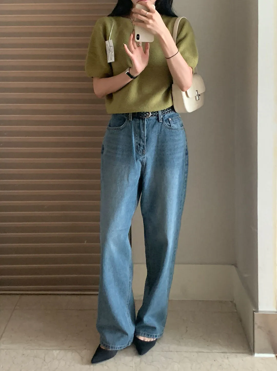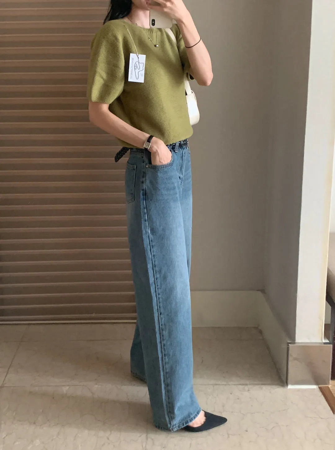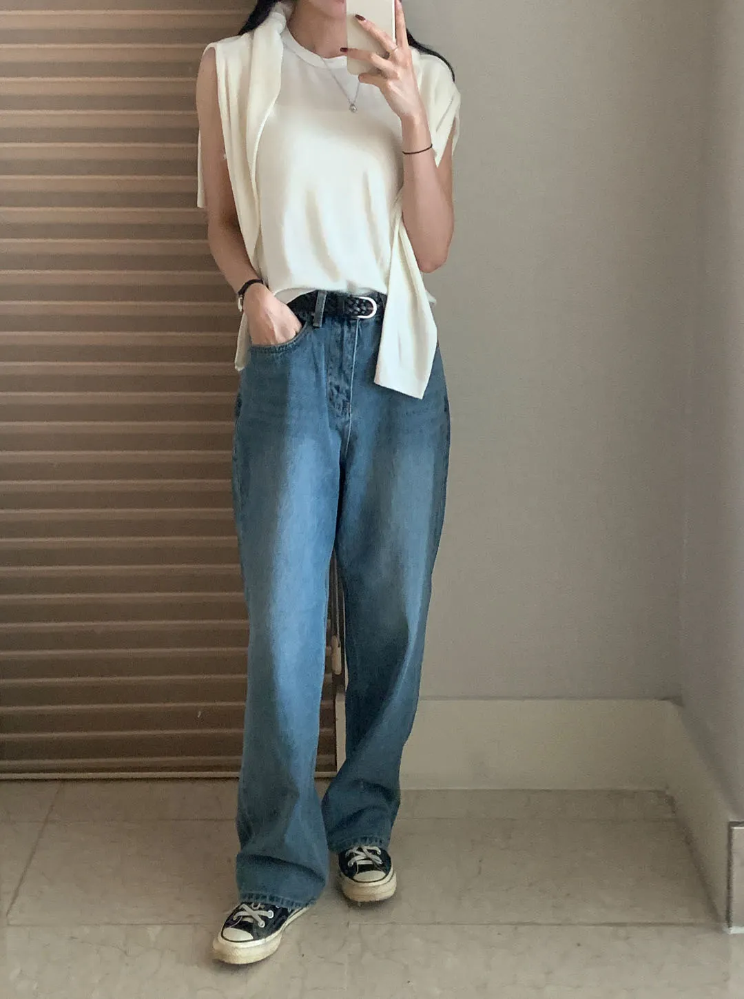 ミッドブルーストレートデニムパンツ