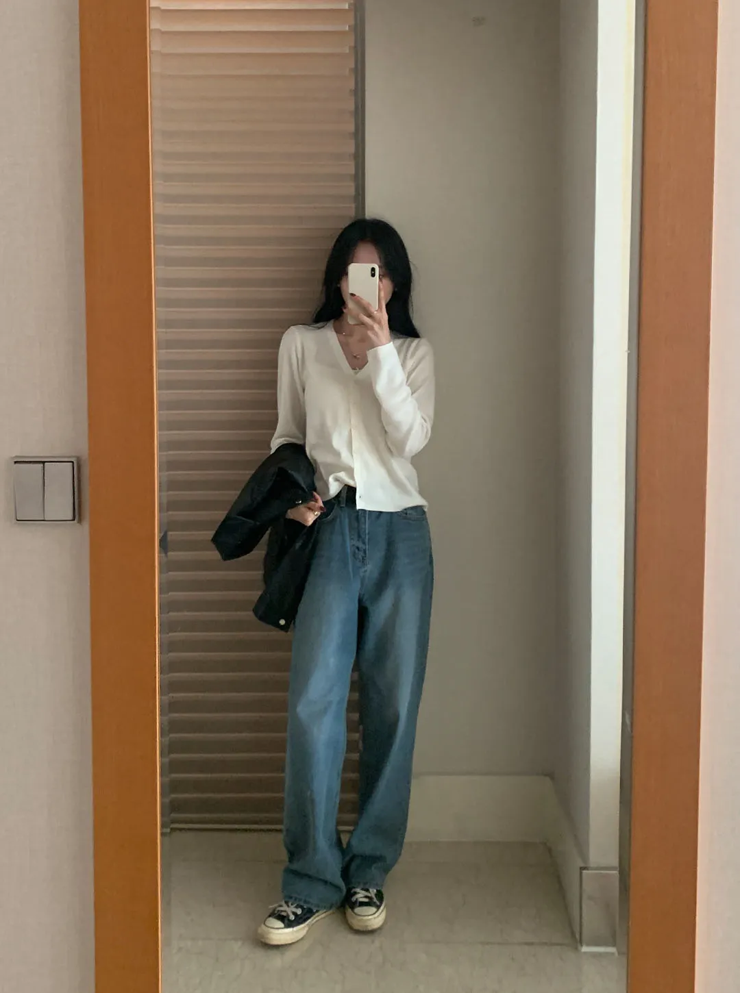ボタンVネッククロップドスリム長袖カーディガン