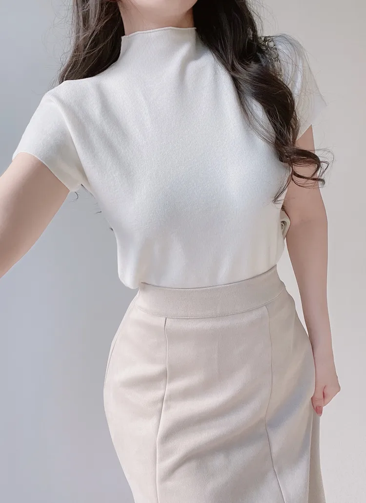 • ハーフネック半袖シンプル無地ニット | mirangmirang | 詳細画像24