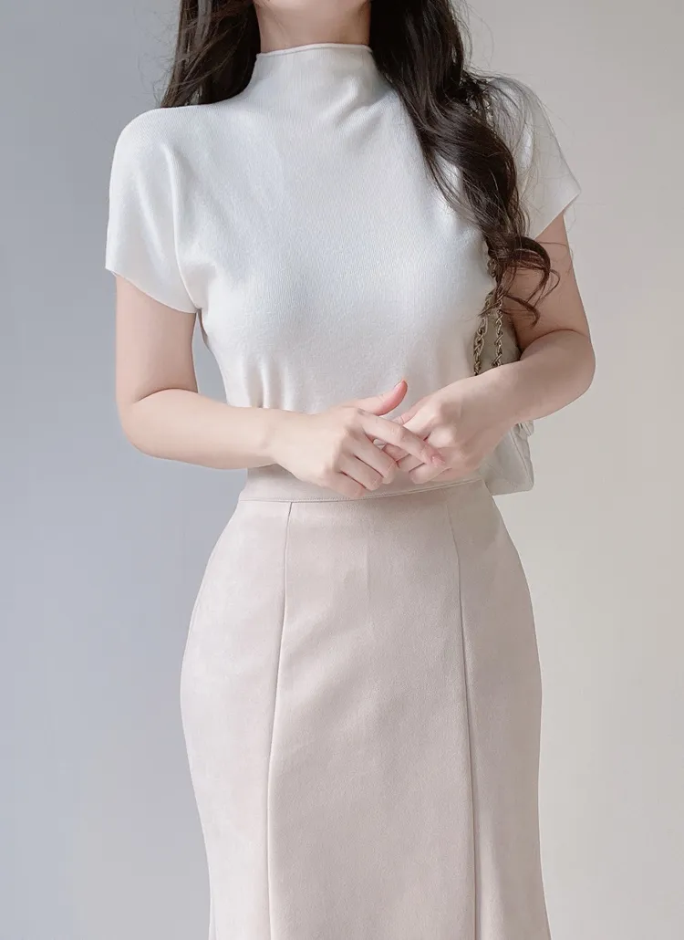 • ハーフネック半袖シンプル無地ニット | mirangmirang | 詳細画像4