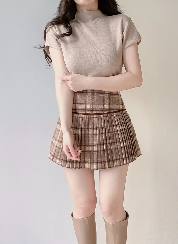 • ハーフネック半袖シンプル無地ニット | mirangmirang | 詳細画像12