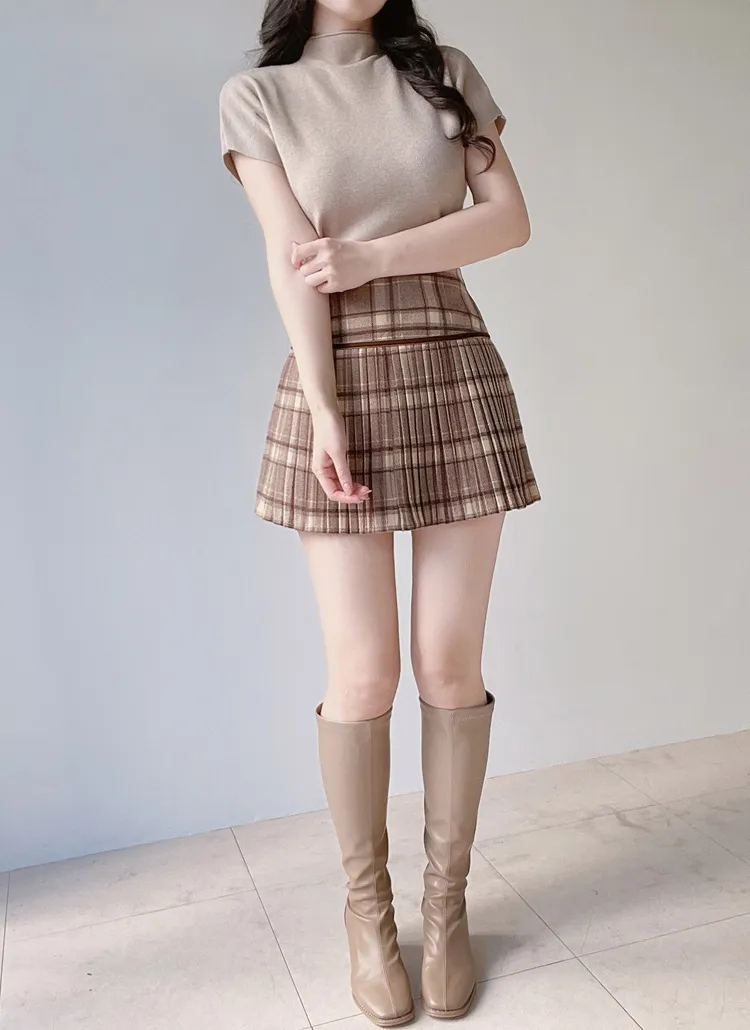 • ハーフネック半袖シンプル無地ニット | mirangmirang | 詳細画像26