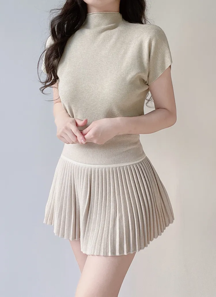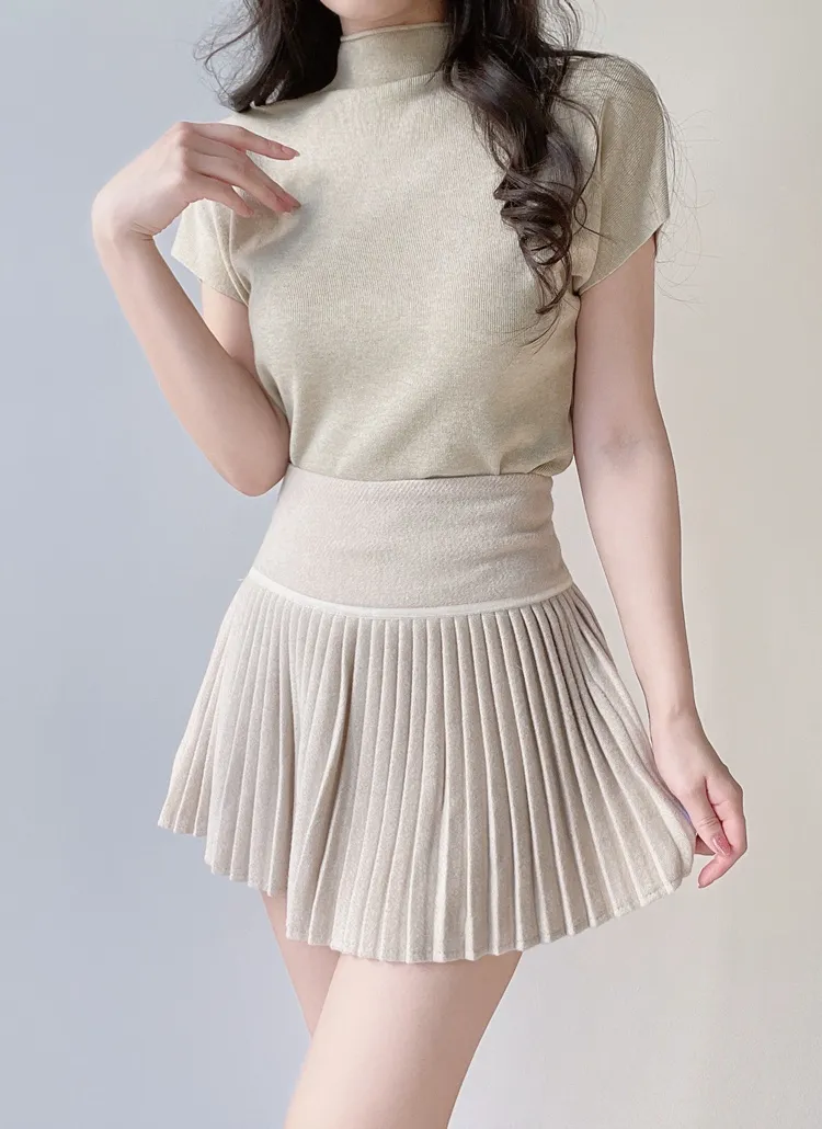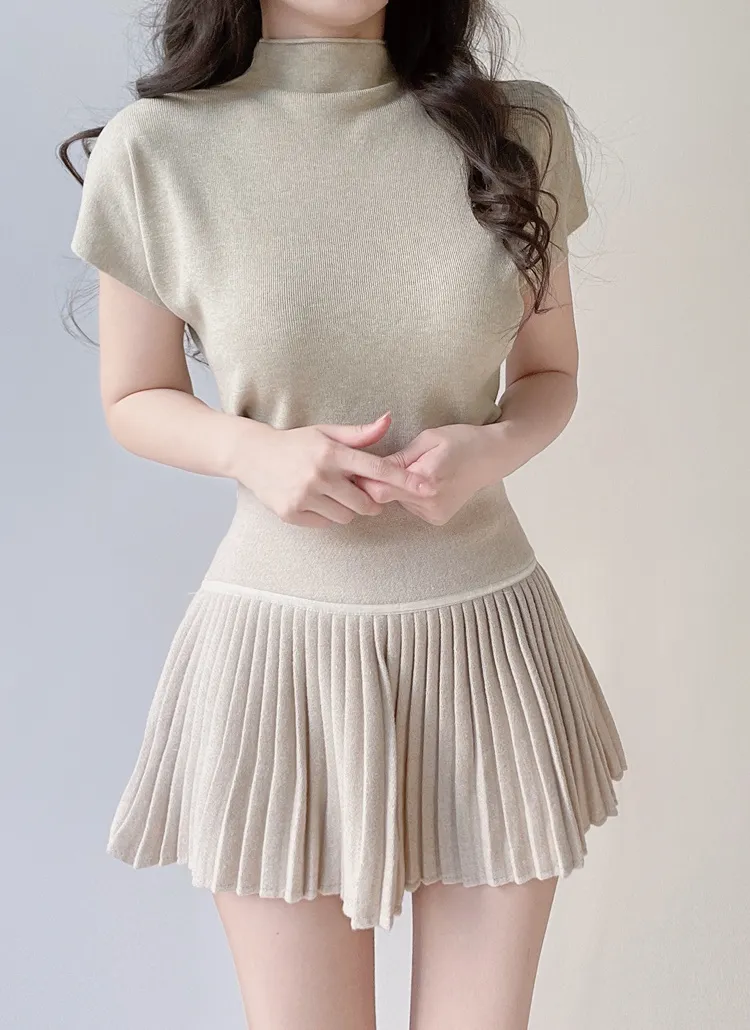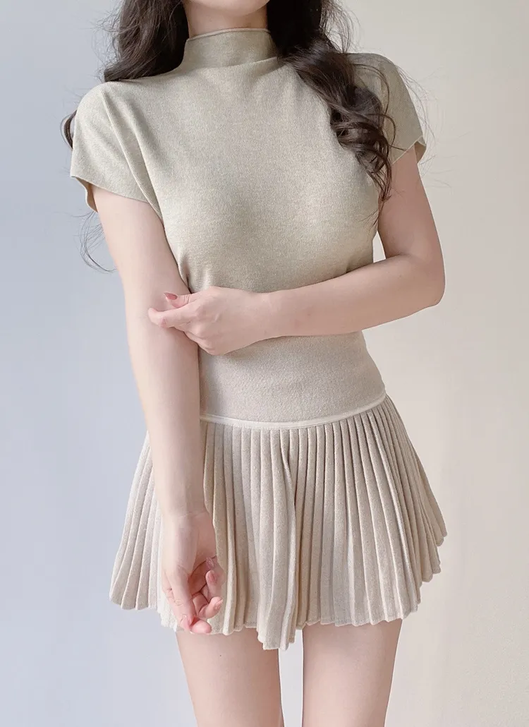 • ハーフネック半袖シンプル無地ニット | mirangmirang | 詳細画像2