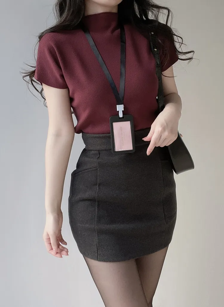 • ハーフネック半袖シンプル無地ニット | mirangmirang | 詳細画像21