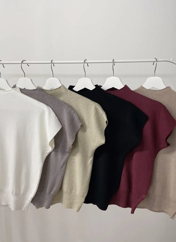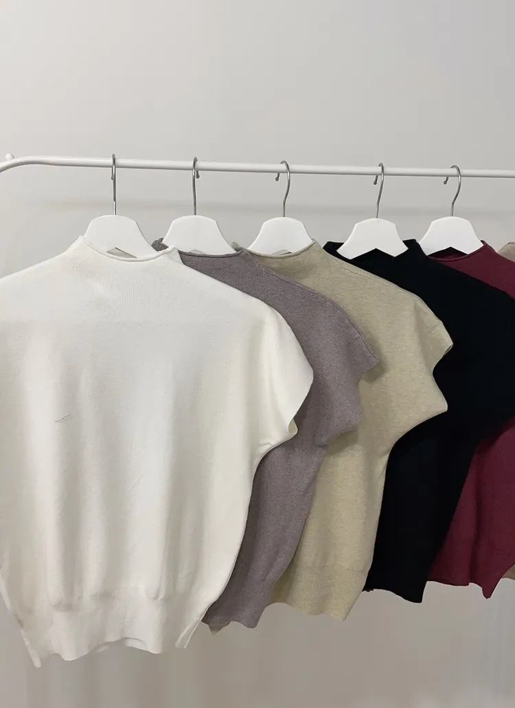 • ハーフネック半袖シンプル無地ニット | mirangmirang | 詳細画像39