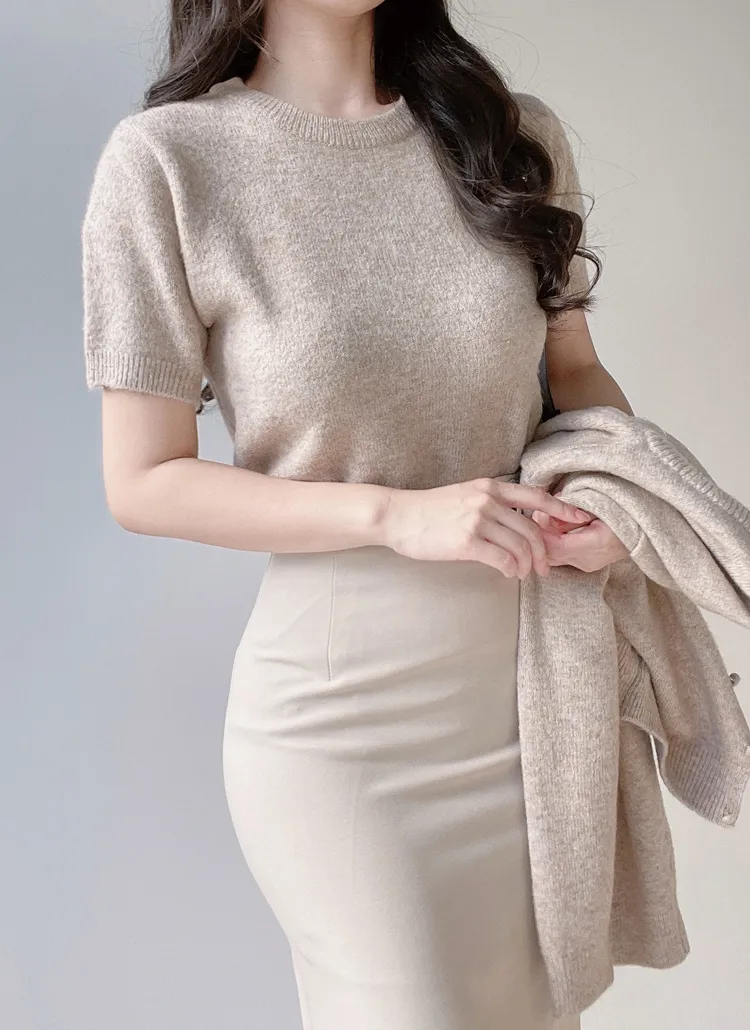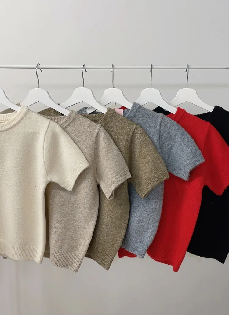 • メルトンタッチラウンドネックシンプルベーシック半袖無地ニット | mirangmirang | 詳細画像23