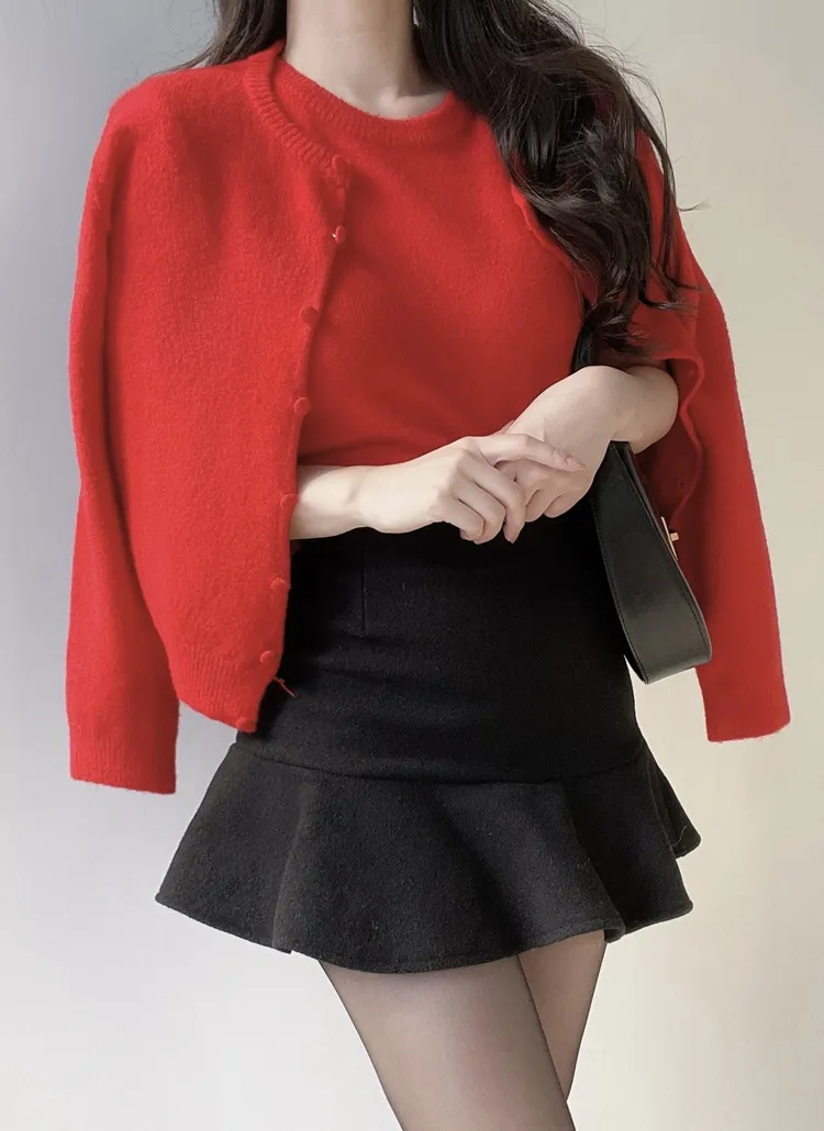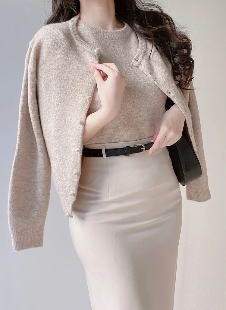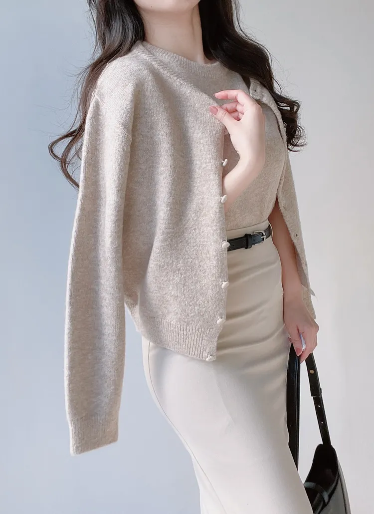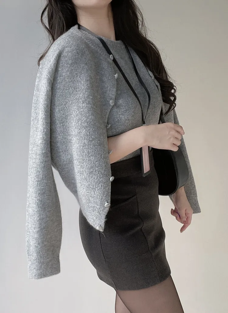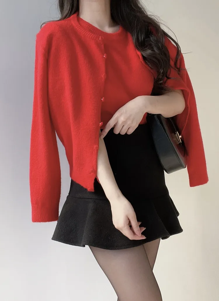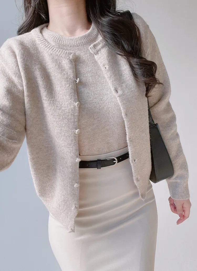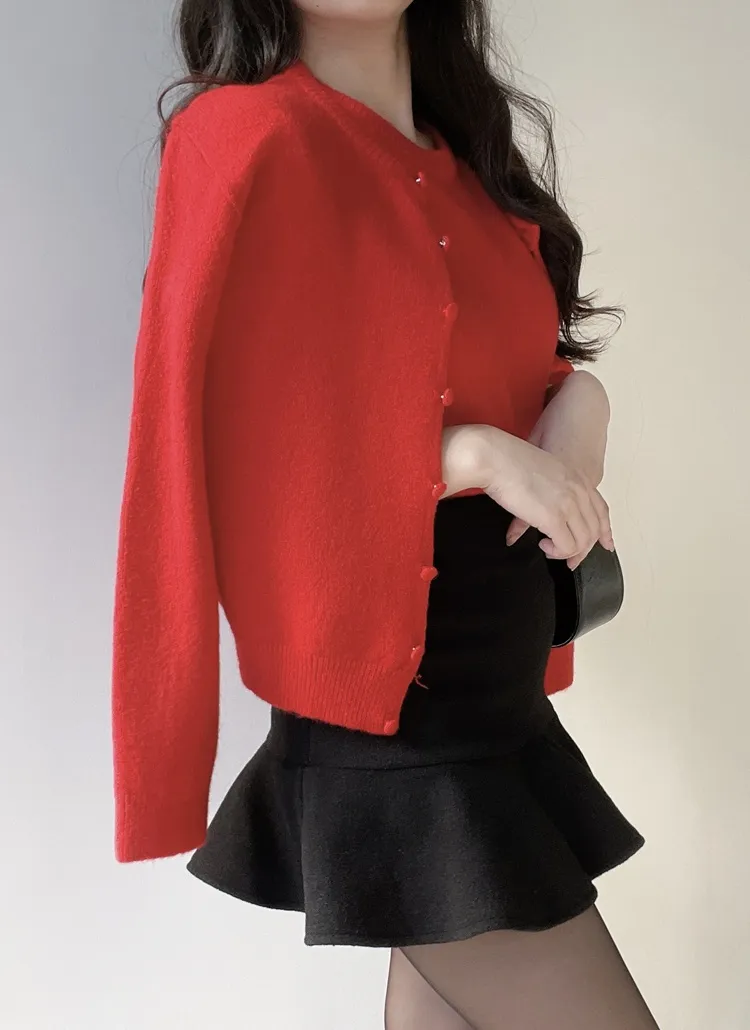 ボタンVネッククロップドスリム長袖カーディガン