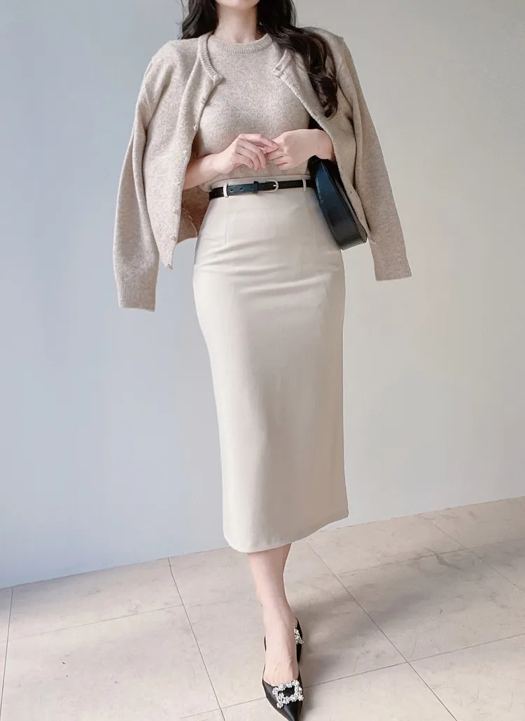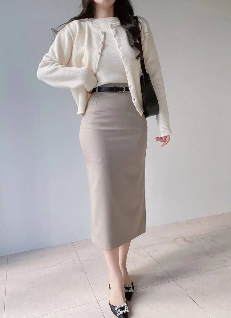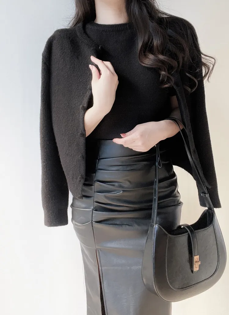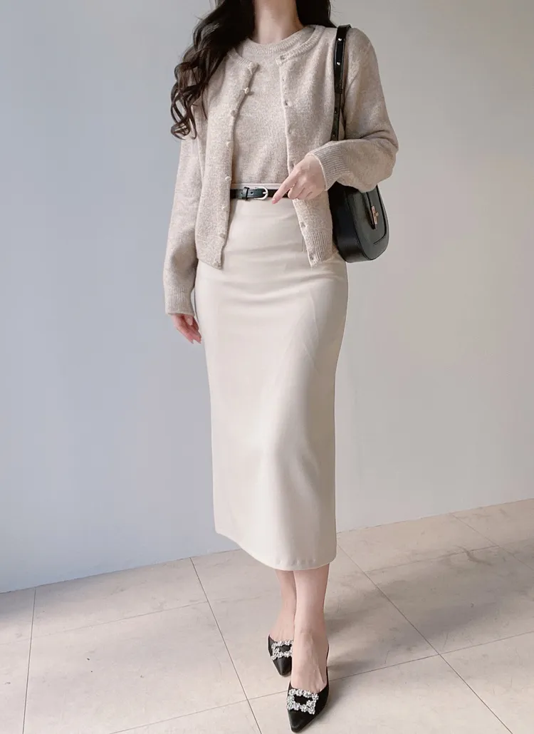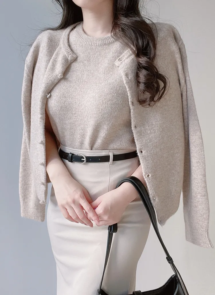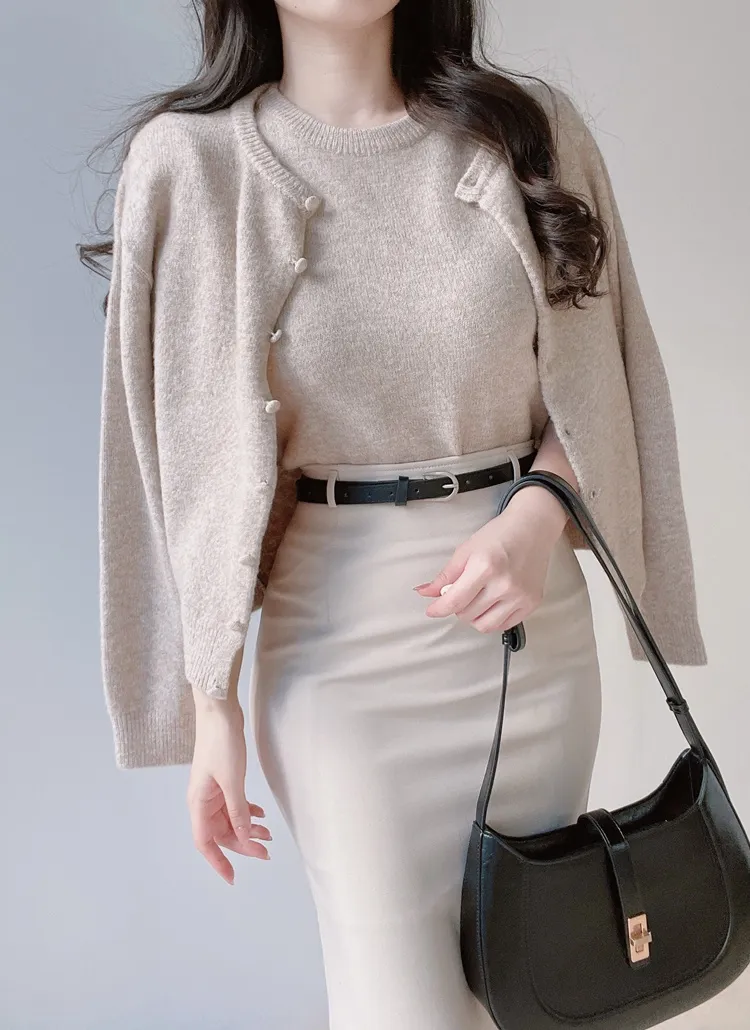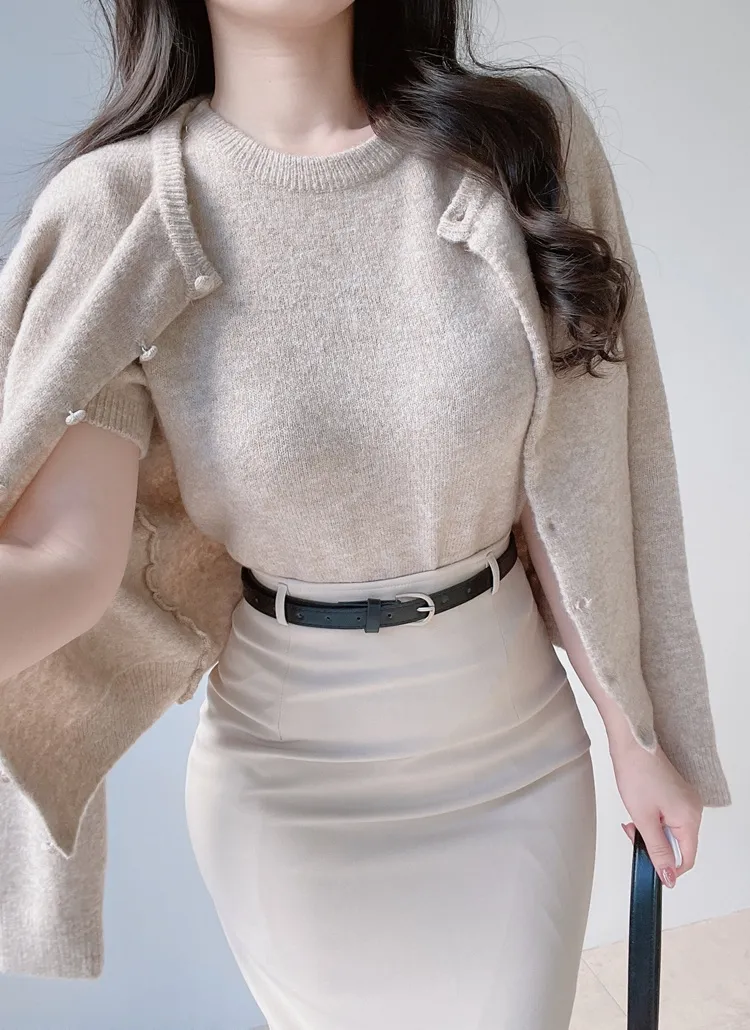 ボタンVネッククロップドスリム長袖カーディガン