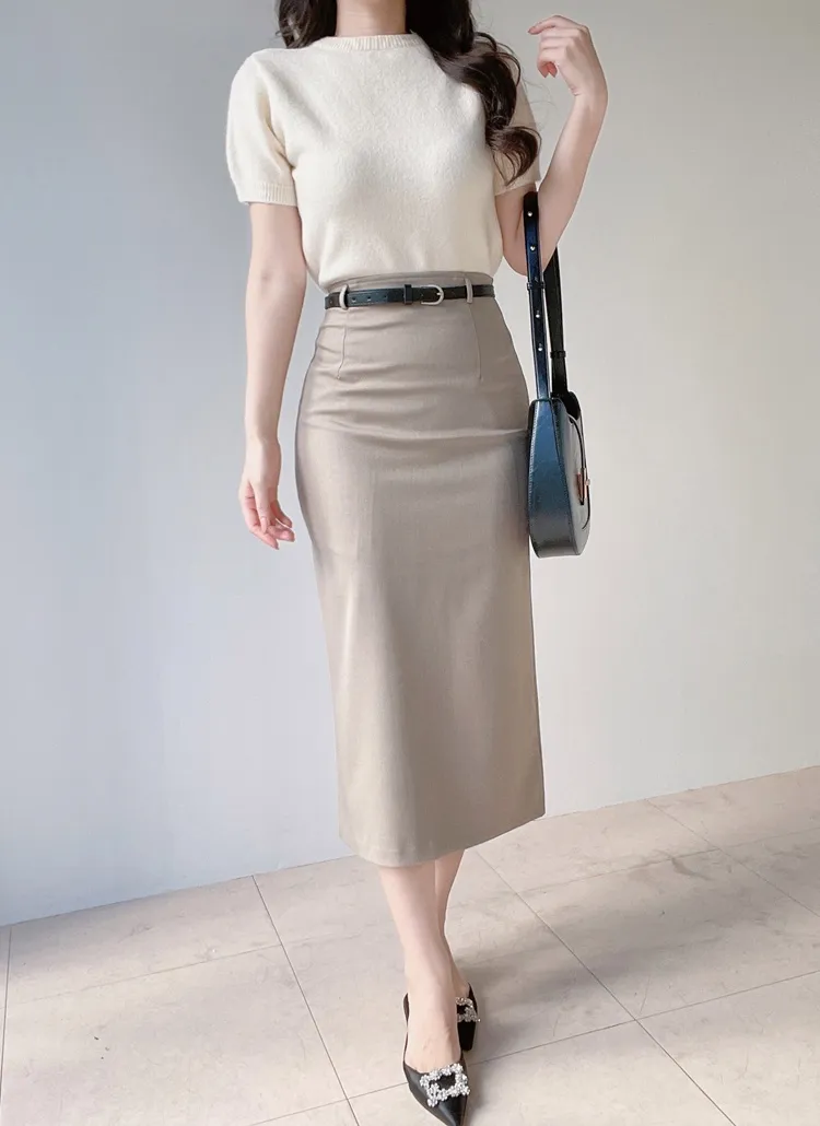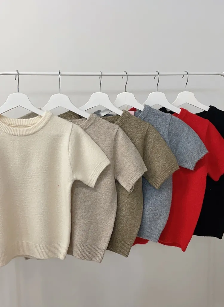 • メルトンタッチラウンドネックシンプルベーシック半袖無地ニット | mirangmirang | 詳細画像25