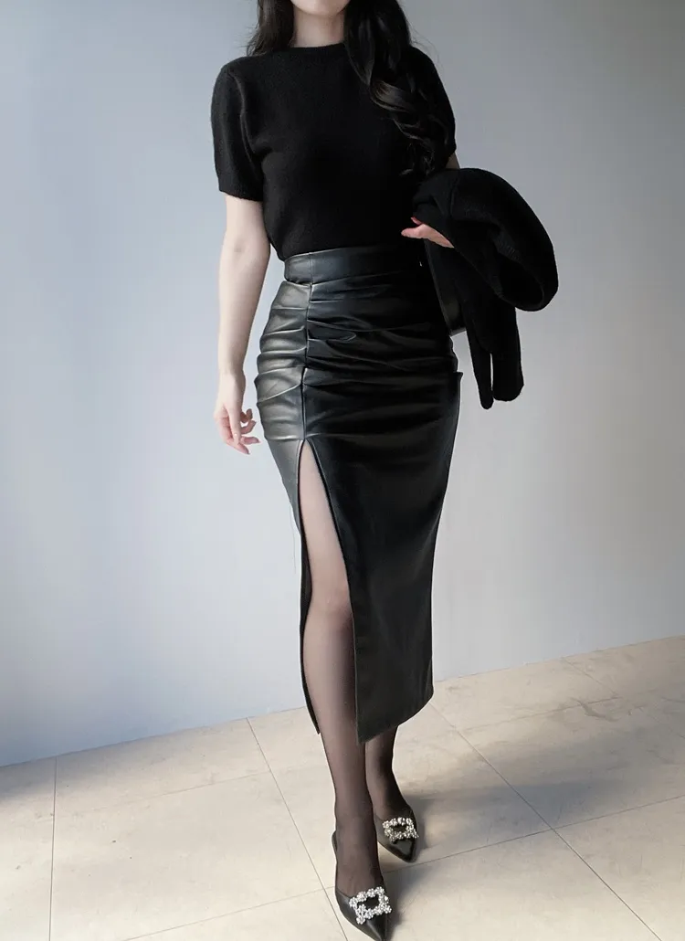 アンゴラ混長袖ツイストスリムVネックニット