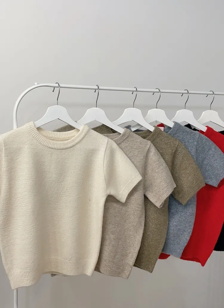 • メルトンタッチラウンドネックシンプルベーシック半袖無地ニット | mirangmirang | 詳細画像34