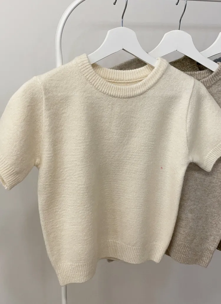 • メルトンタッチラウンドネックシンプルベーシック半袖無地ニット | mirangmirang | 詳細画像1