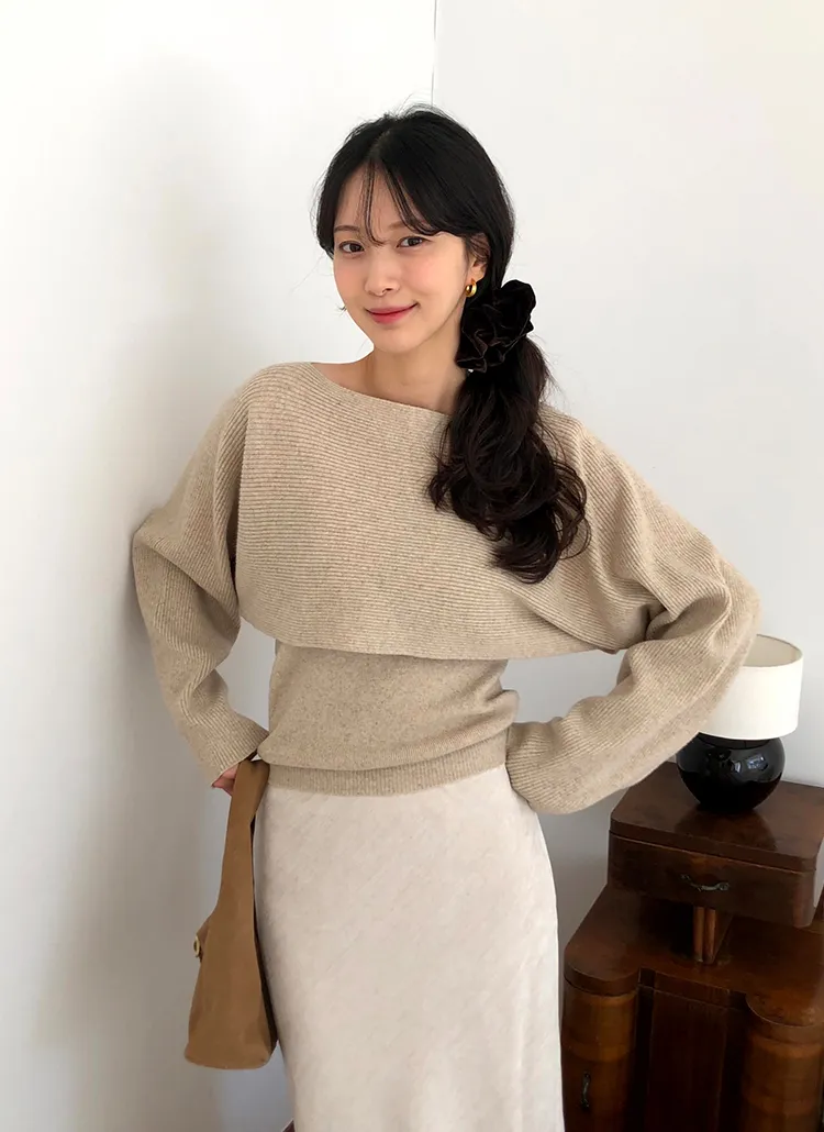 ハーフネック長袖スリムニット