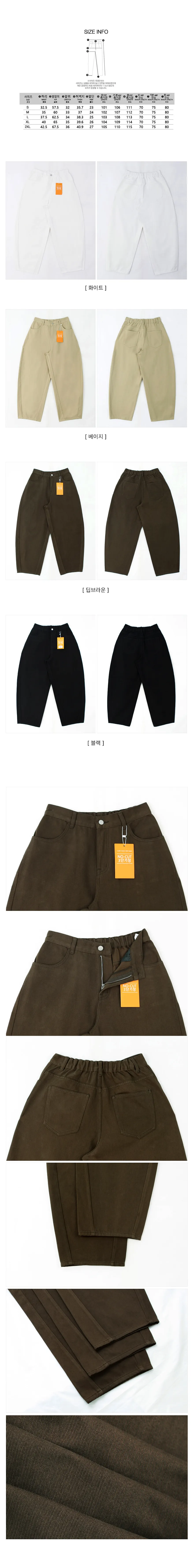 | Size | ウエスト | ヒップ | 裾幅 | わたり | 股上 | 着丈 |