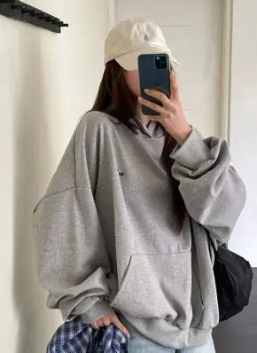 フードカンガルーポケット長袖ドロップショルダーオーバーサイズルーズレタリングパーカー