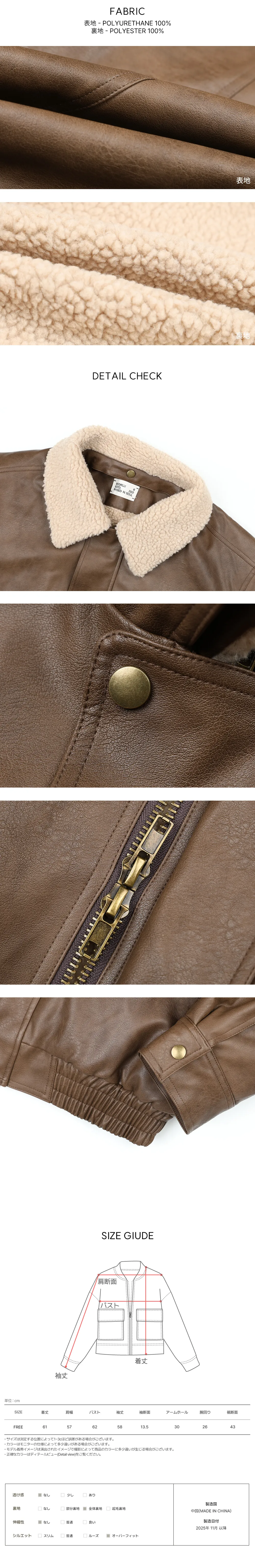 着用 : ブラウン / FREE