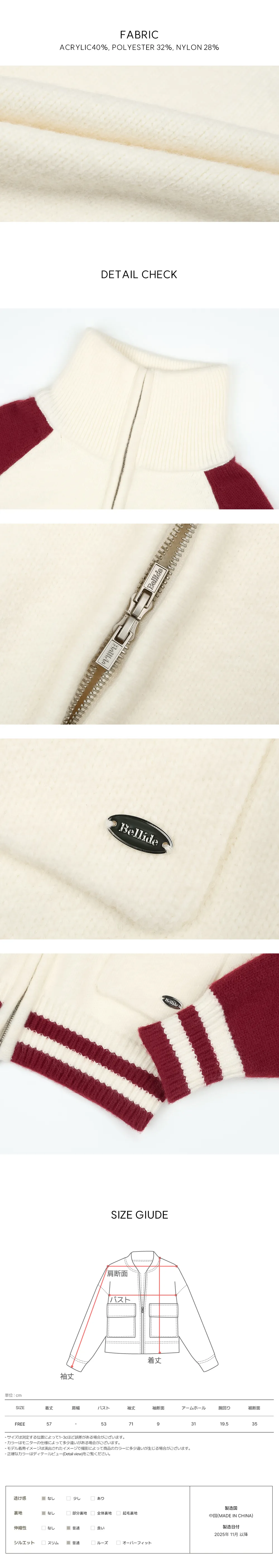 | FREE | 53 | 71(肩幅含む) | 57 | 9 | 19.5 | 31 | 35 |