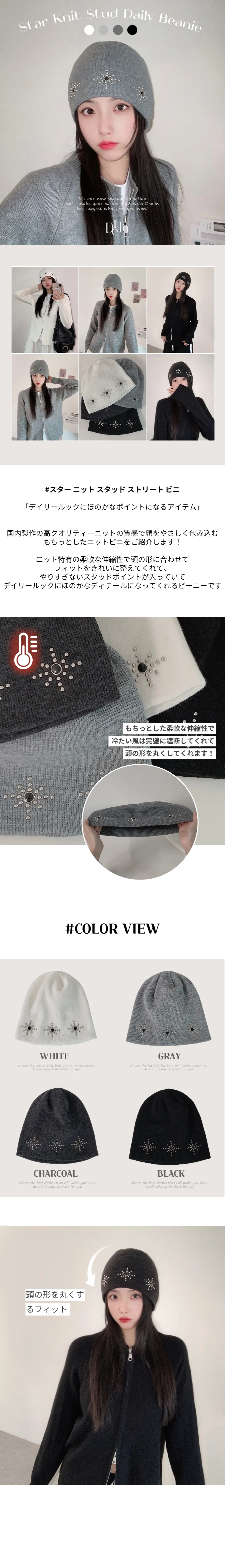 着用 : ホワイト / FREE,グレー / FREE,チャコール / FREE,ブラック / FREE