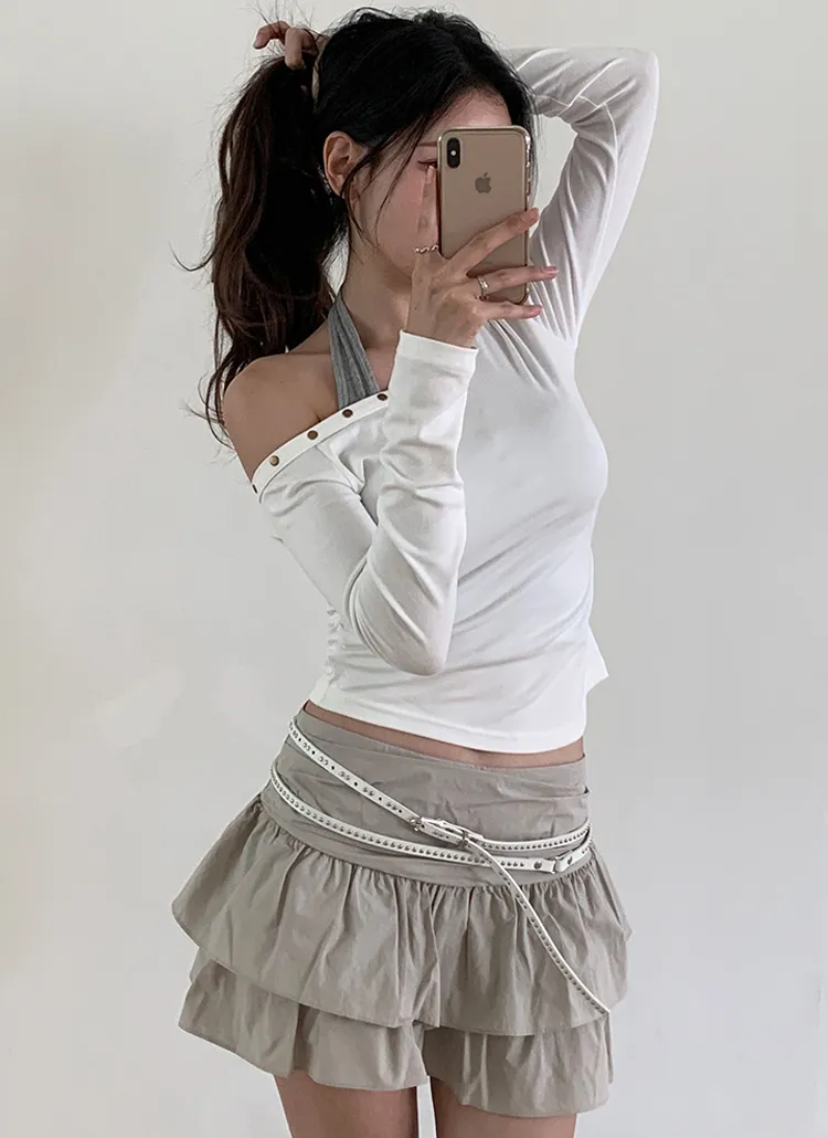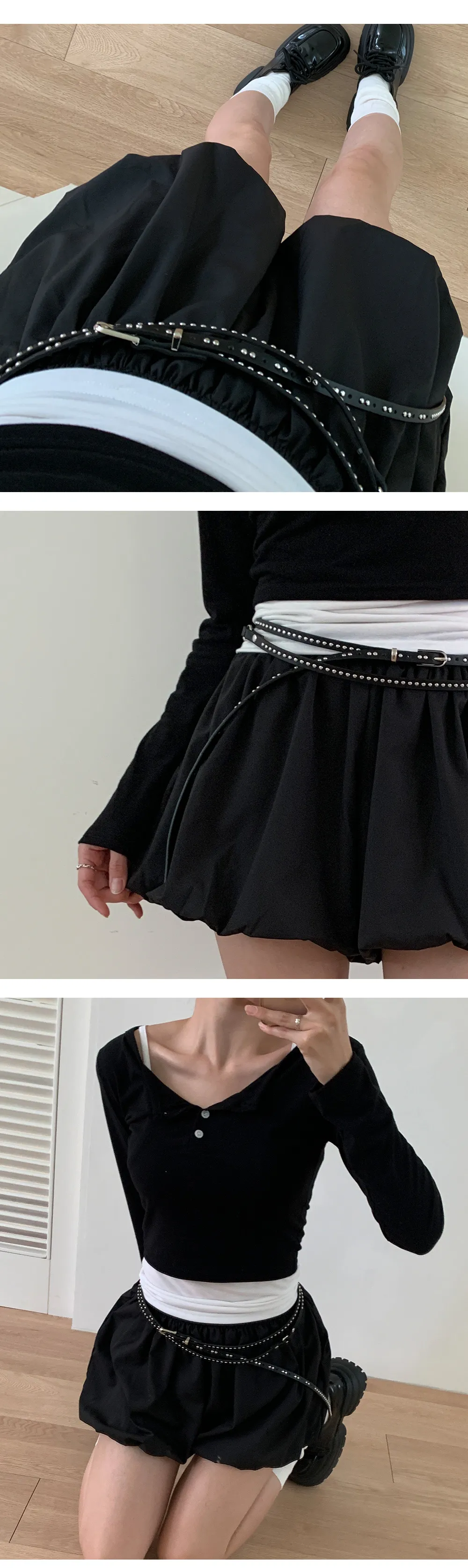 ショートウエストゴムバルーンカラーセットアップスカートパンツシャツ