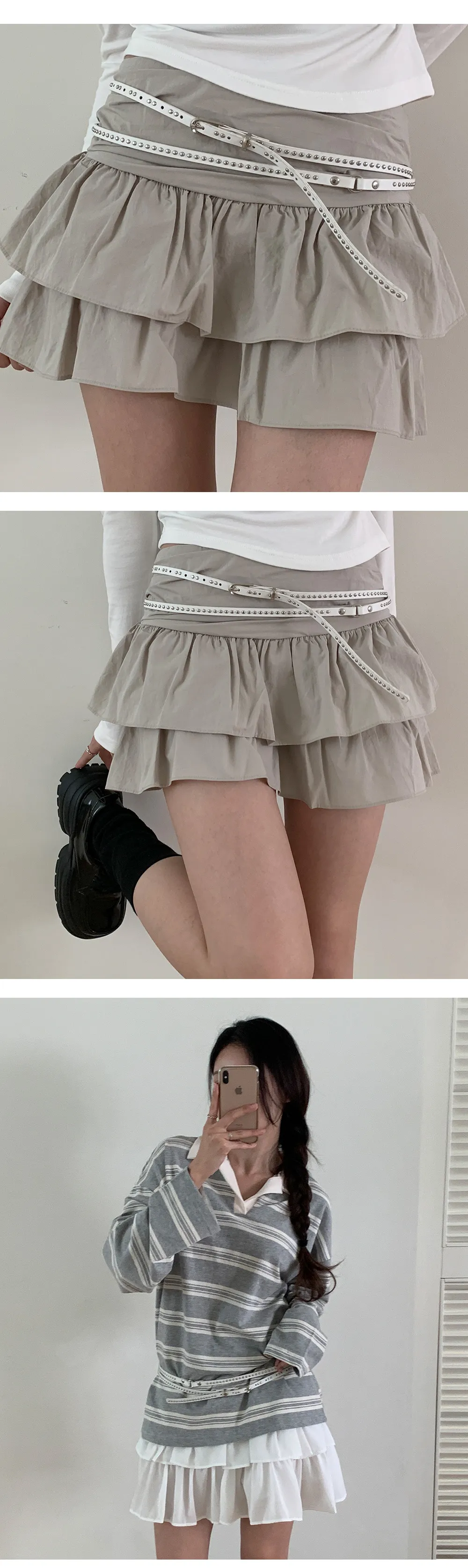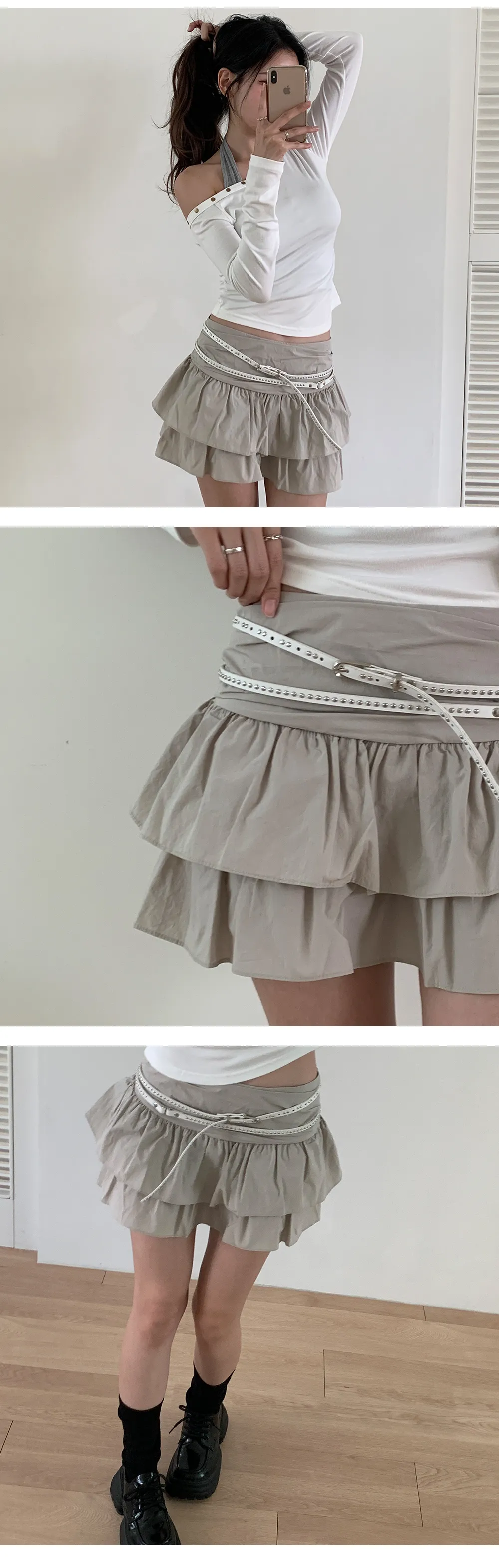 ベルト付プリーツミニスリットスカートパンツ