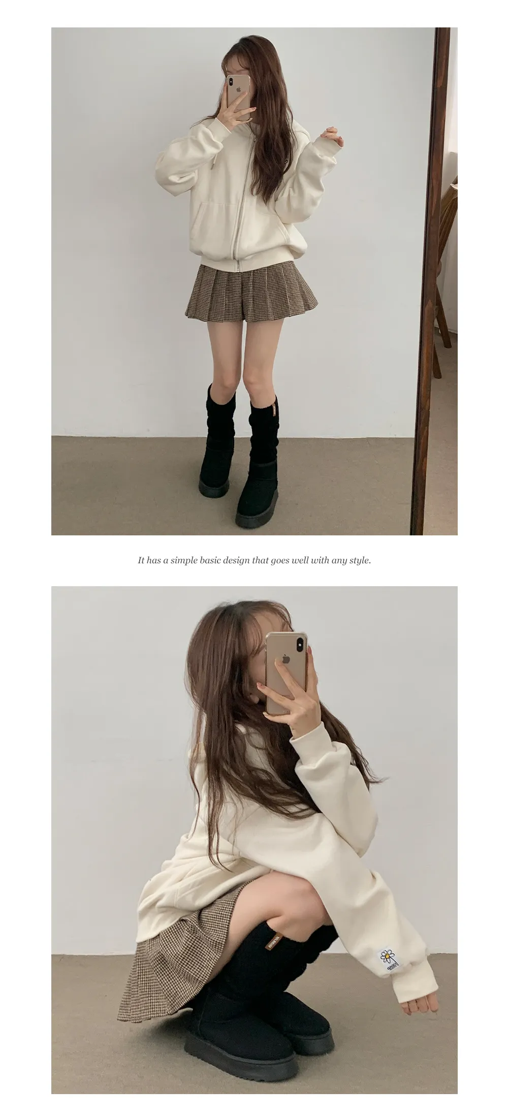 ボアハーフネック長袖ハイネックボタンポケットジャンパー