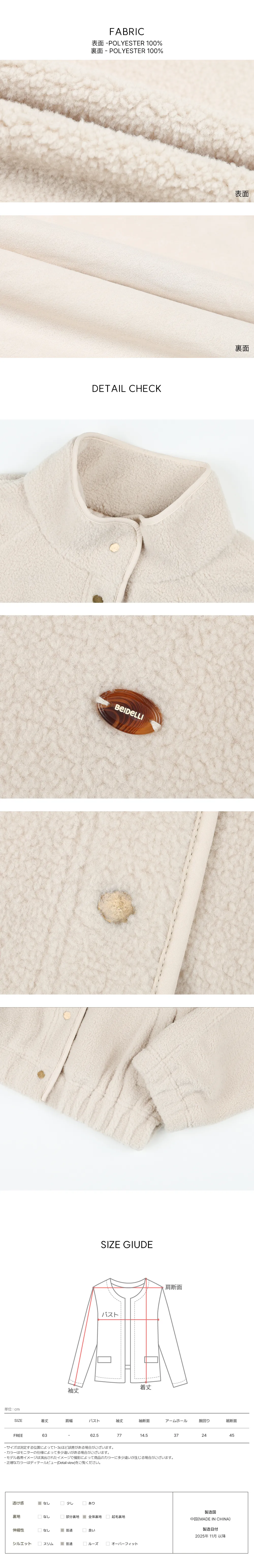 | FREE | 62.5 | 77(肩幅含む) | 63 | 14.5 | 24 | 37 | 45(ゴム) |