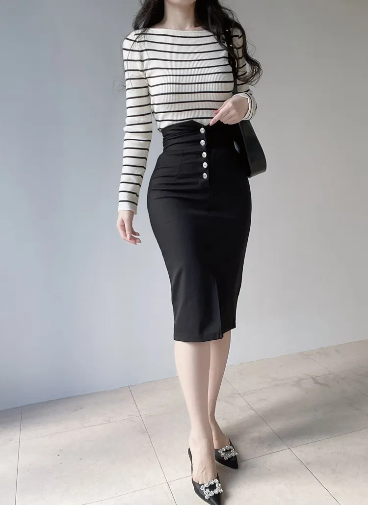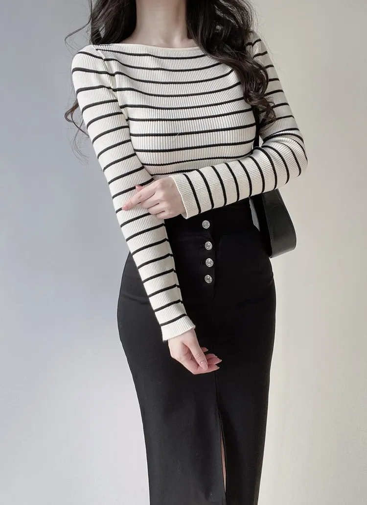 着用 : アイボリー / FREE,ブラックストライプ / FREE,アイボリーストライプ / FREE