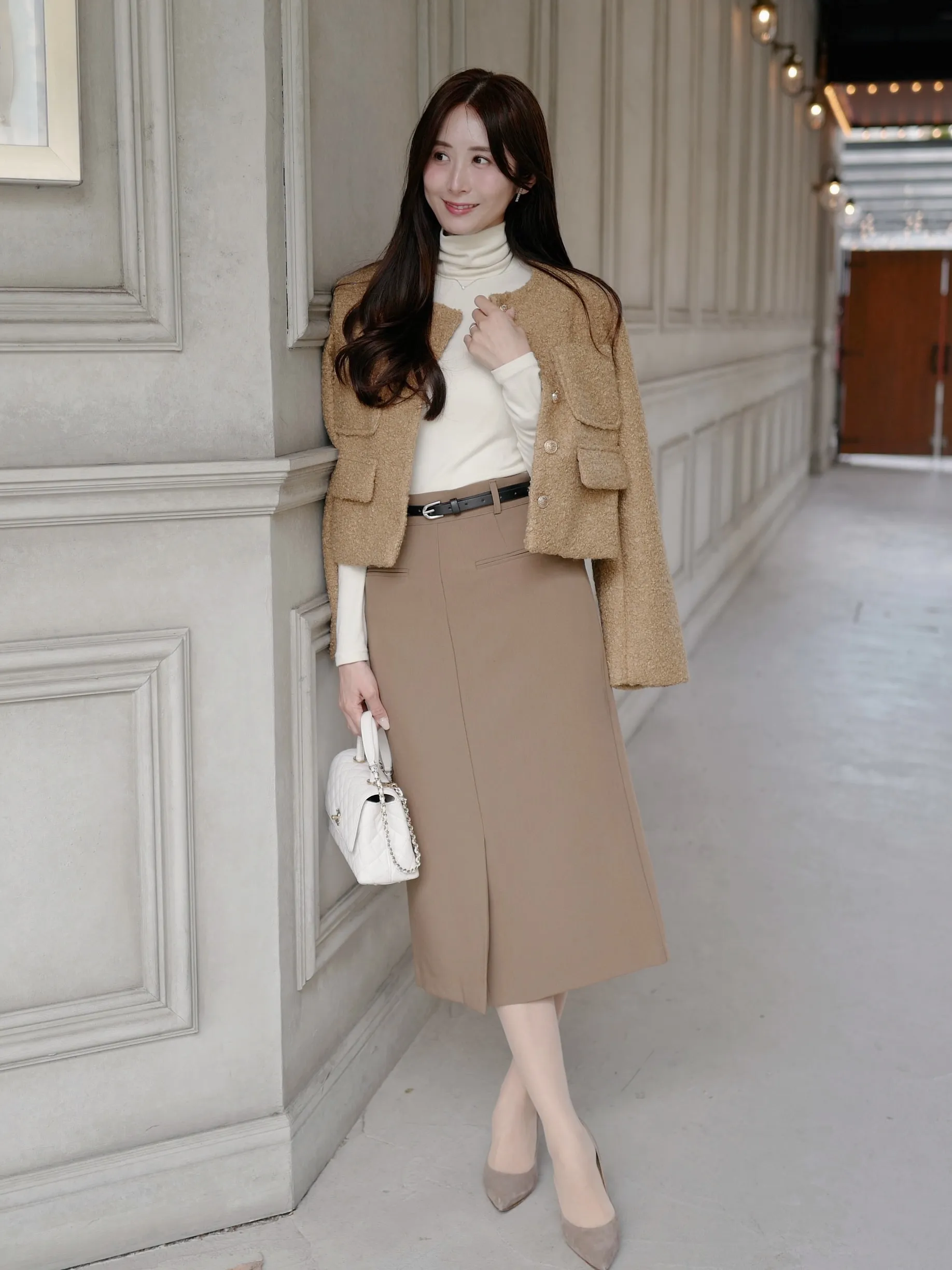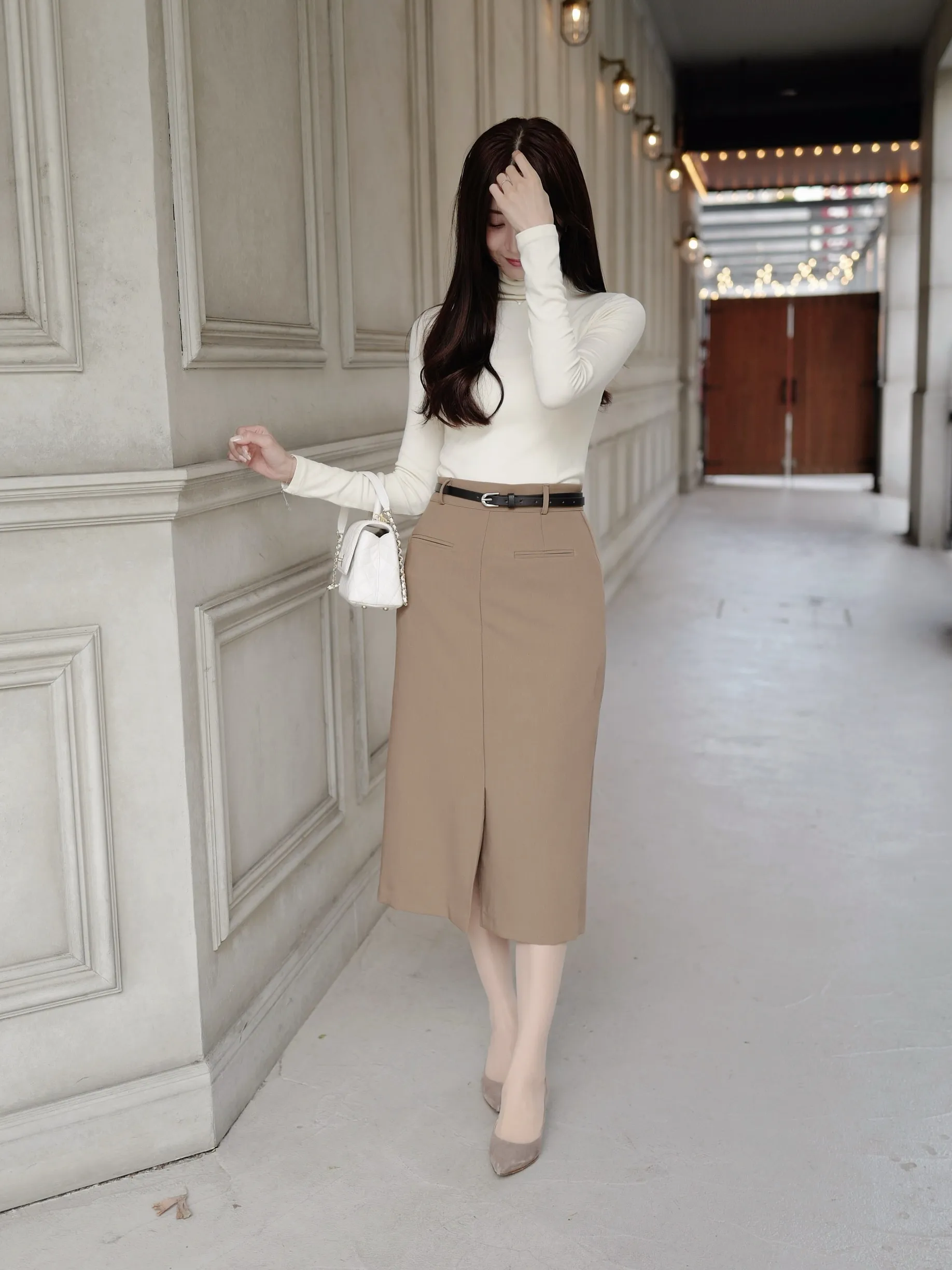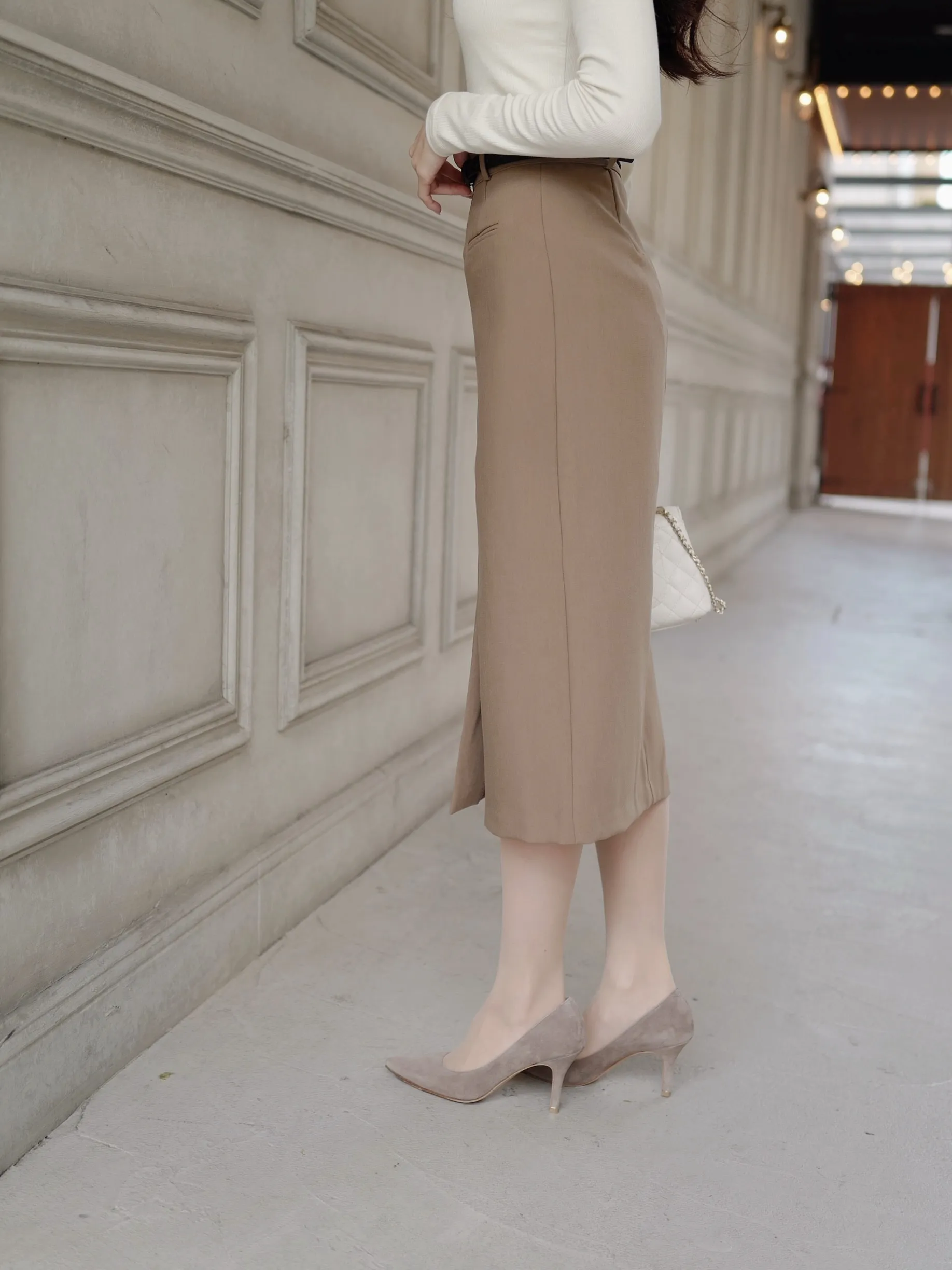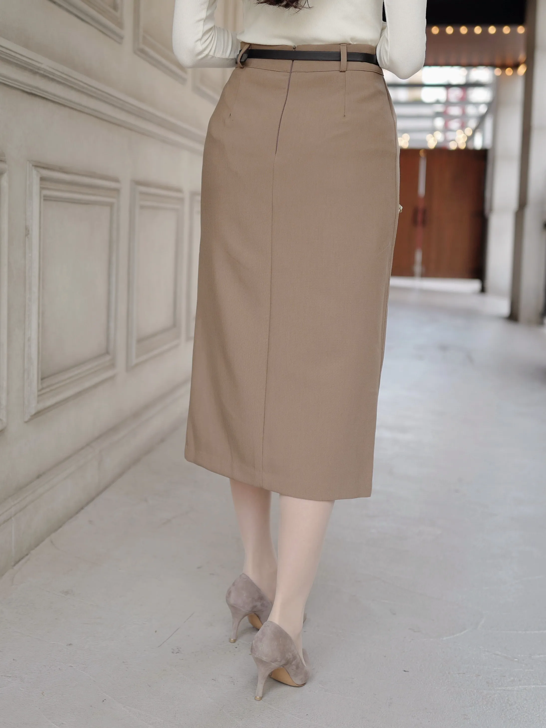 華奢なベルト付きで、ウエストをすっきり見せてくれるタイトスカート。フロントスリットで上品で歩きやすく、通勤にもデイリーにもおすすめです♡