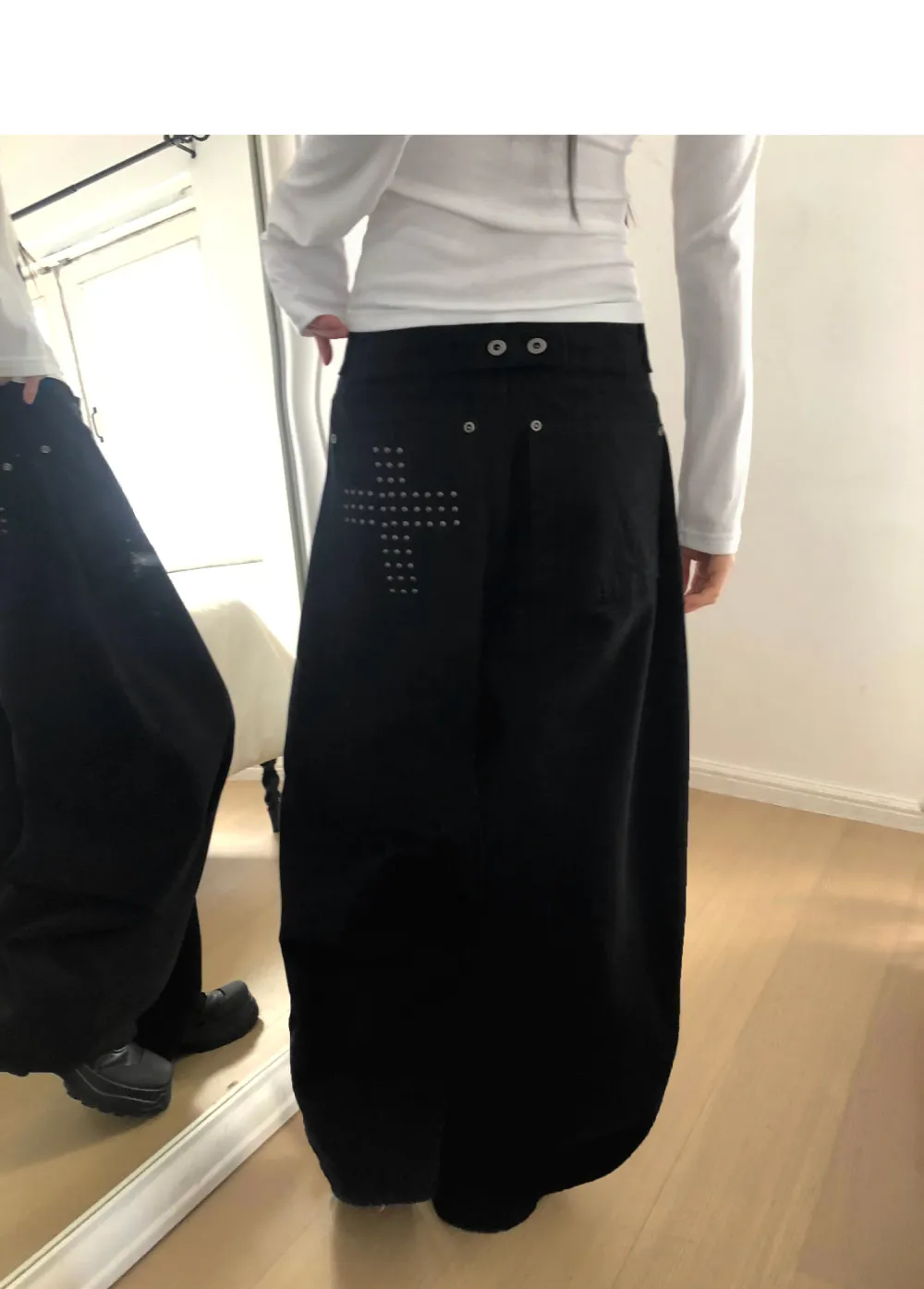 | Size | ウエスト | ヒップ | 裾幅 | わたり | 股上 | 着丈 |