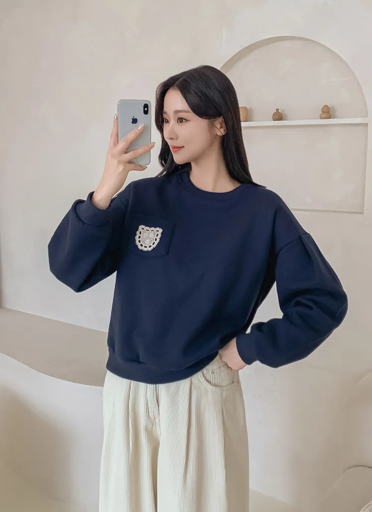 裏起毛ラウンドネックポケット刺繍スウェット・B1947389