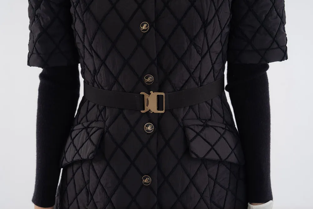 中綿ハイネックポケットダブルジップクロップドカラーダウンジャケット