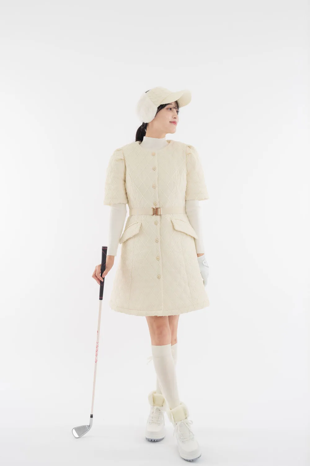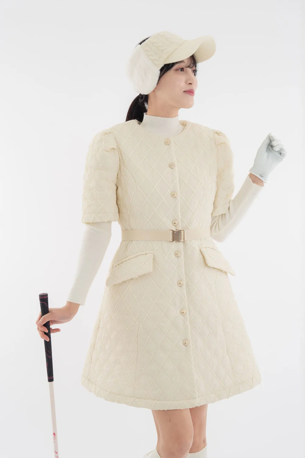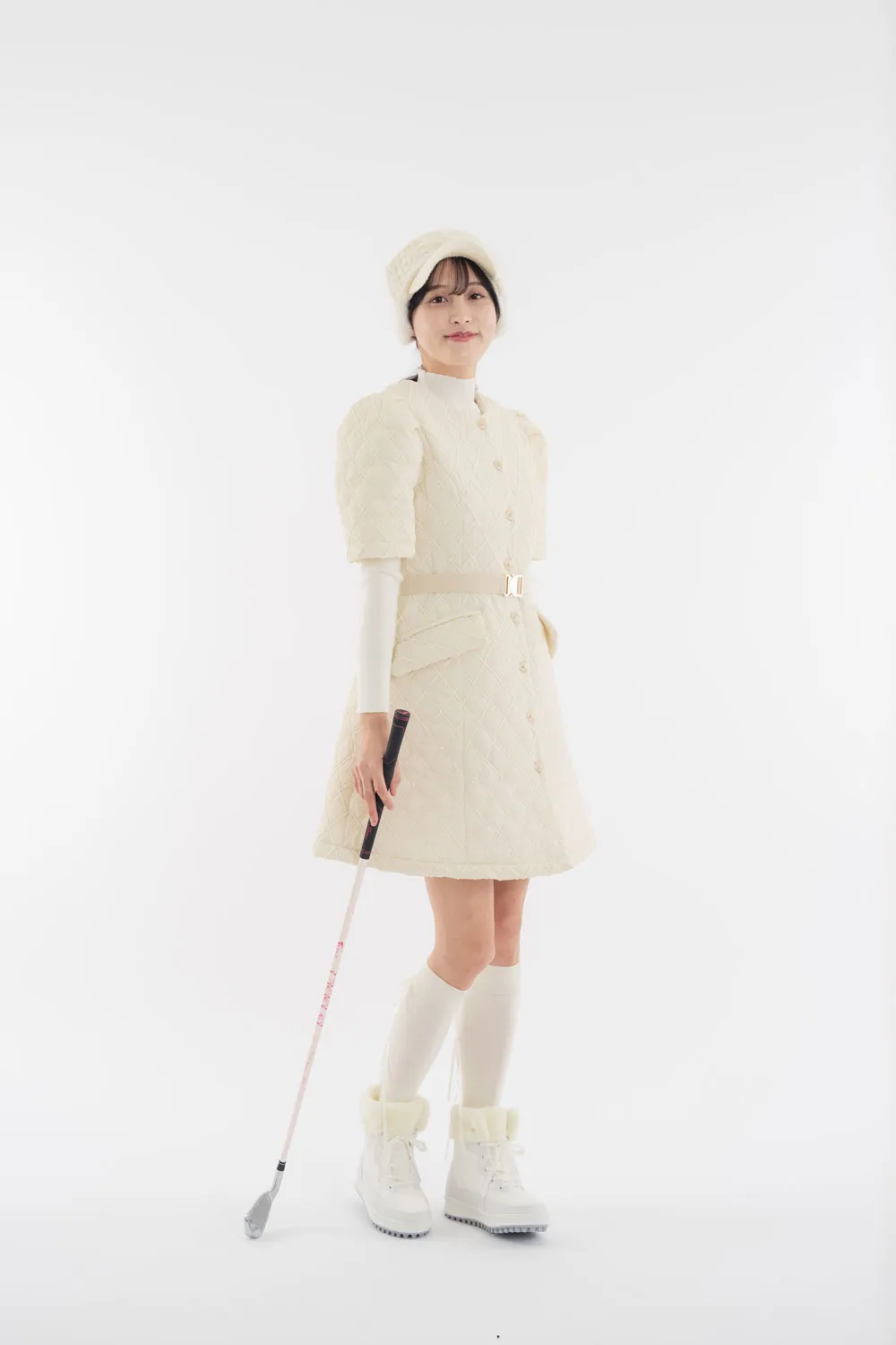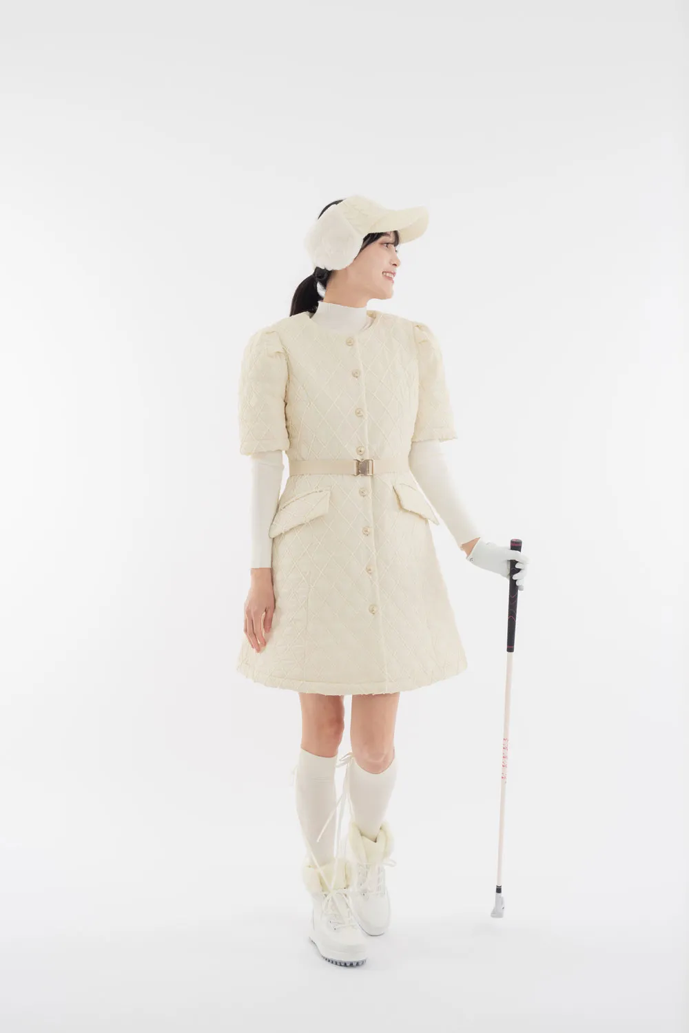 ベルト付中綿ノースリーブジップワンピース