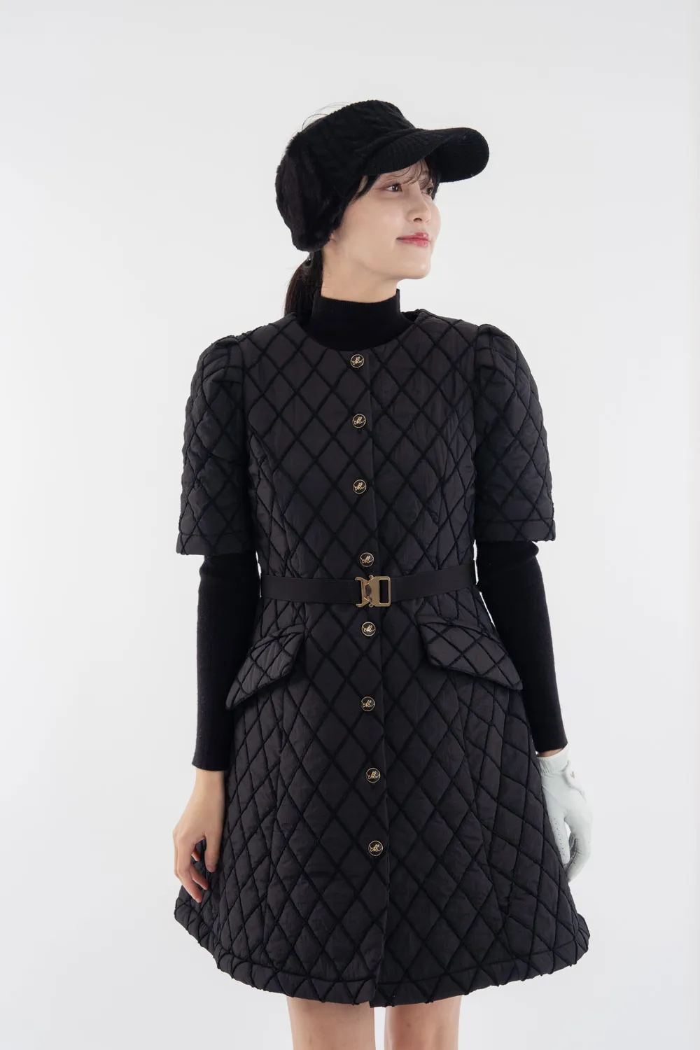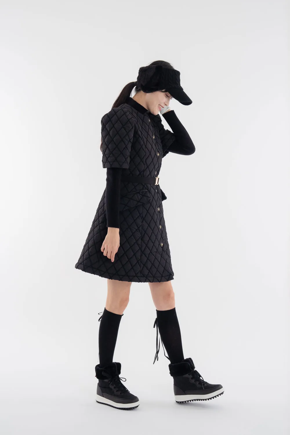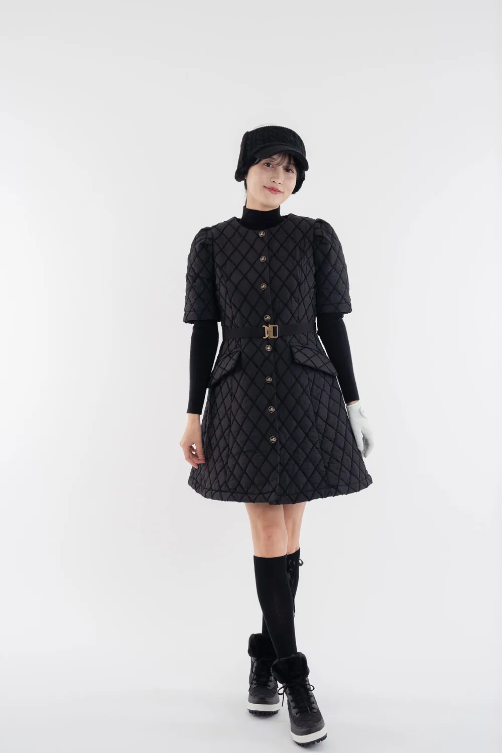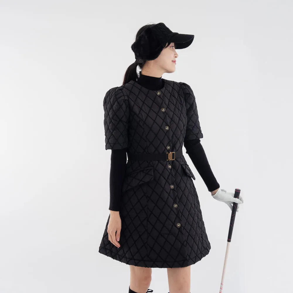 ハイネック配色ウエストキルティングワンピース