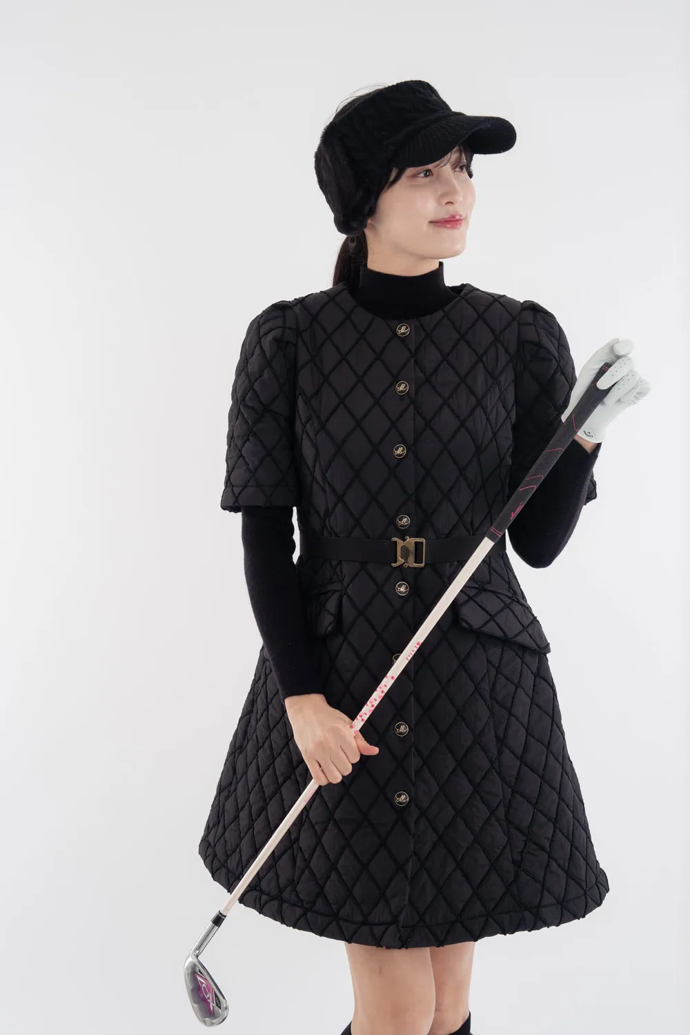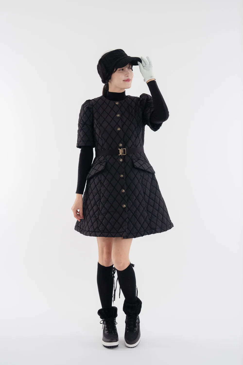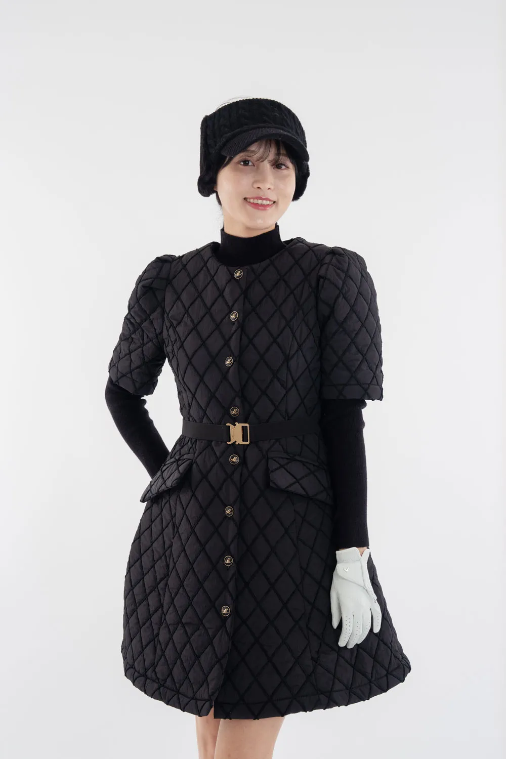 ハイネック配色ウエストキルティングワンピース