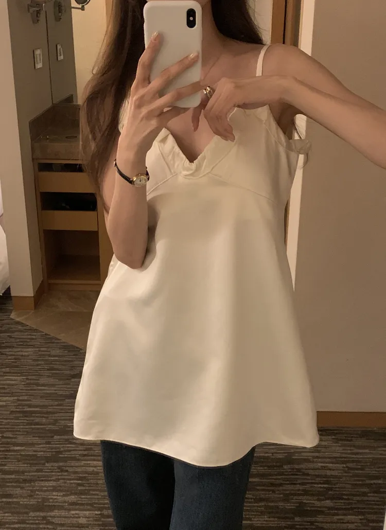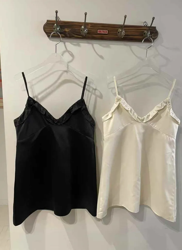 VネックフリルベーシックAラインミニキャミワンピース・B1947741