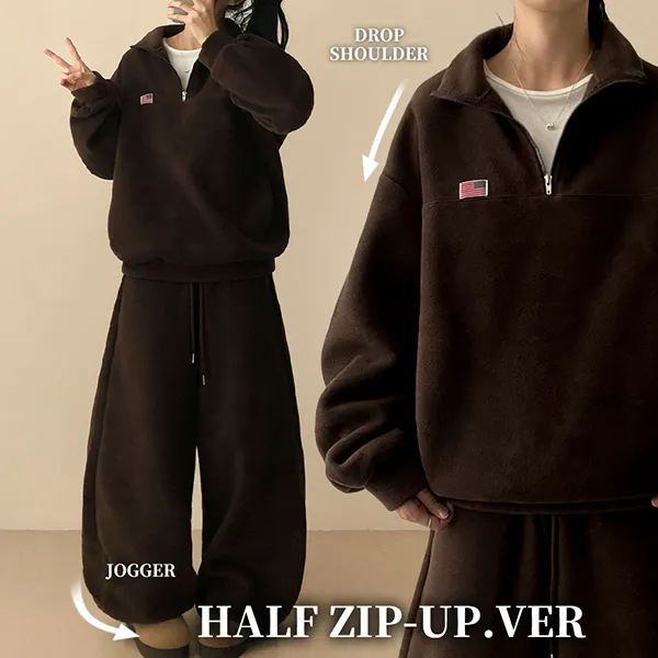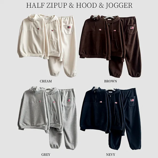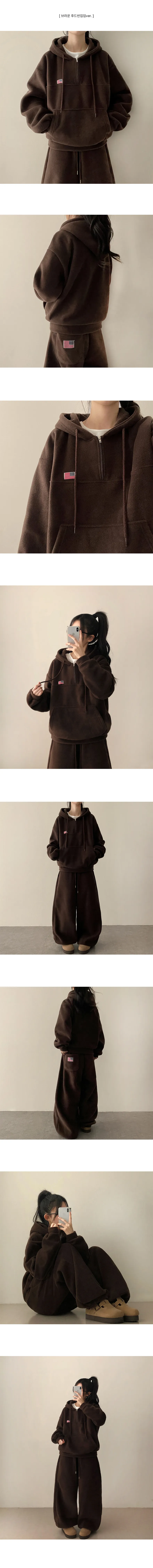 着用 : メランジ-ラインハーフジップアップ / FREE,ブラウン-ラインハーフジップアップ / FREE,ブラウン-フードハーフジップアップ / FREE,ダークネイビー-ラインハーフジップアップ / FREE,ダークネイビー-フードハーフジップアップ / FREE,クリーム-ラインハーフジップアップ / FREE,クリーム-フードハーフジップアップ / FREE