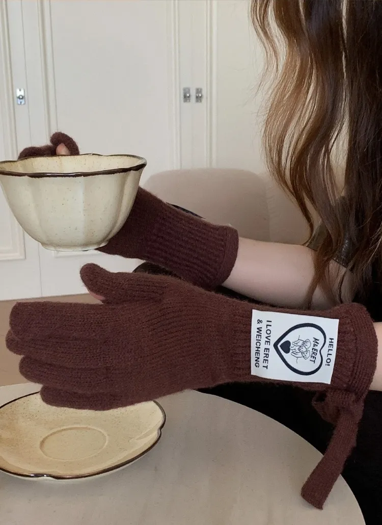 *スマホ対応*ラベルケーブルニット手袋